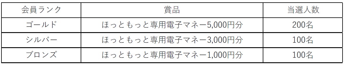 〇期間中、500円以上のご利用で各月合計400名様に会員ランクに応じたほっともっと専用電子マネーが抽選で当たる!