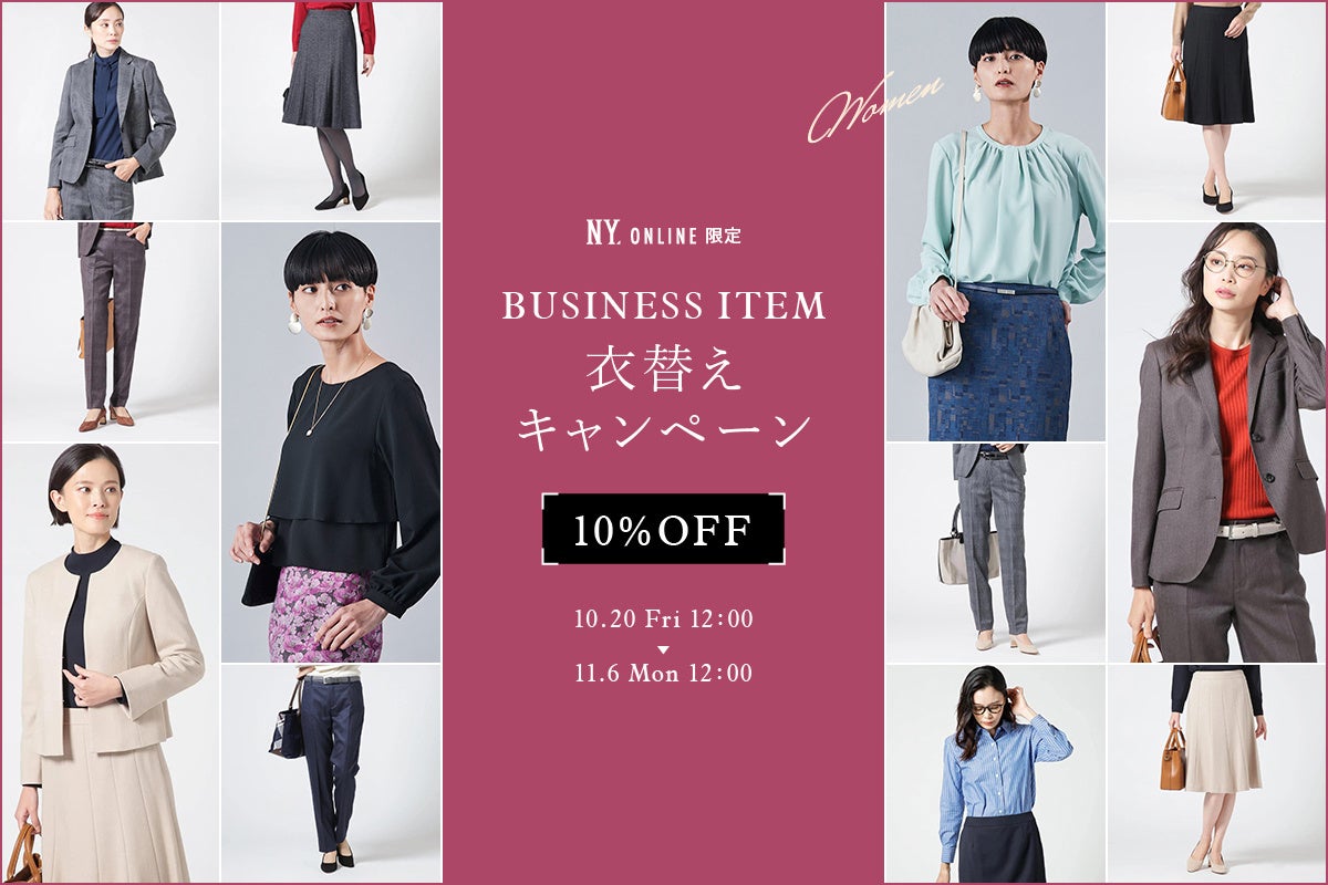【10/20(金)12:00より】NYオンラインにて『WOMEN ビジネスアイテム衣替えキャンペーン10%OFF』開催!