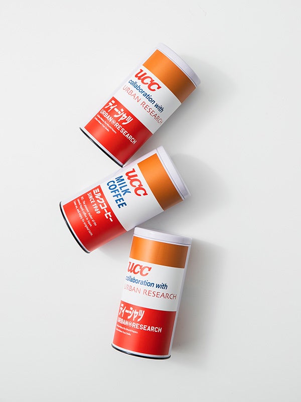 また、UCCは1969年に世界初の缶コーヒーを開発・発売しましたが、発売当初はなかなか売上が伸びませんでした。しかし翌1970年3月から大阪で開催された「日本万国博覧会」に来場した多くの人の目にとまり、大阪万博をきっかけにヒットし、その後全国に広がりました。一方、アーバンリサーチは2025年日本国際博覧会(大阪・関西万博)へ出店していることから、現在展開している『UCCミルクコーヒー』のパッケージを模したケースにTシャツを入れて販売します。