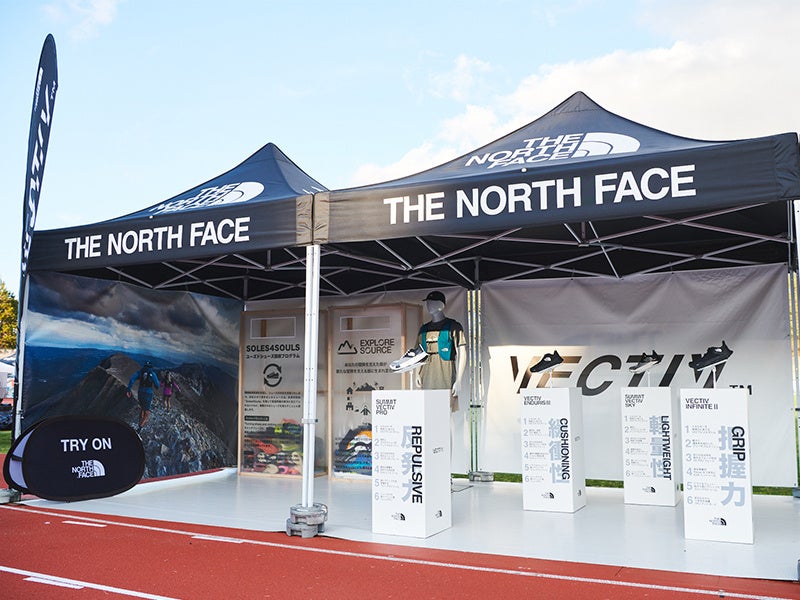 また、会場内では、ザ・ノース・フェイスのトレイルランニングシューズ「VECTIV 3.0(ベクティブ 3.0)」コレクションを試し履きできるブースを設置。昨年の同大会で上位入賞者の多くが着用し存在感の高まりを感じる「VECTIV」をアピールします。