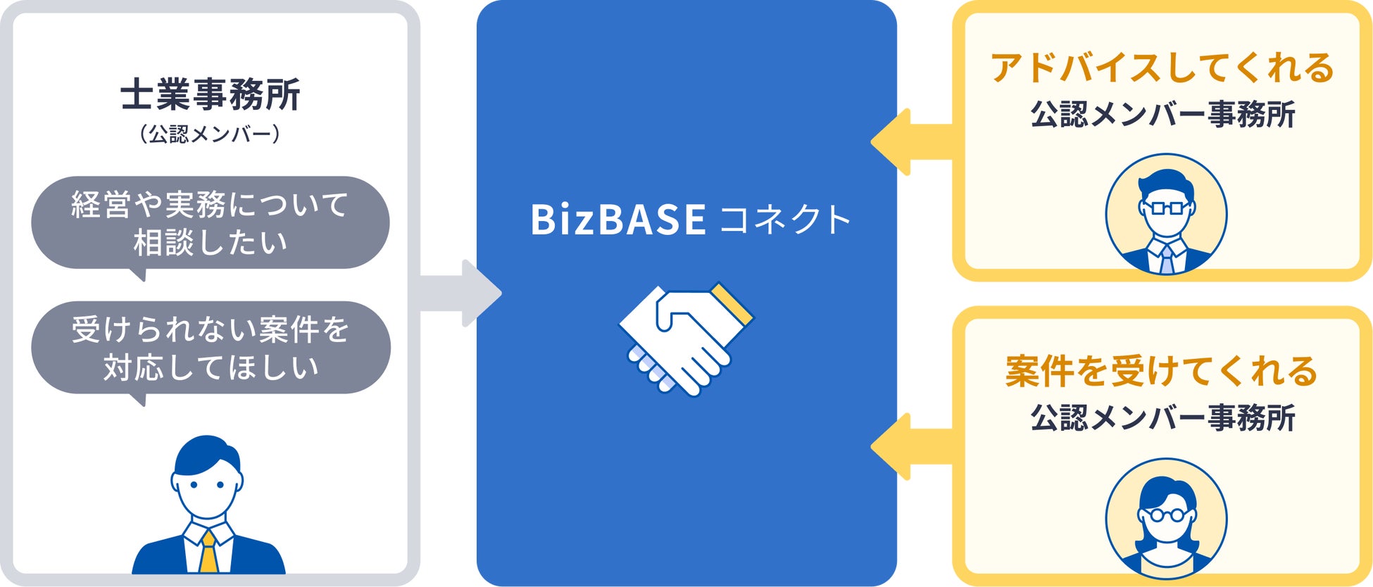 こうした課題を解決するため、ニーズに応じた適切な士業とつながることができる『BizBASEコネクト』の提供を開始しました。