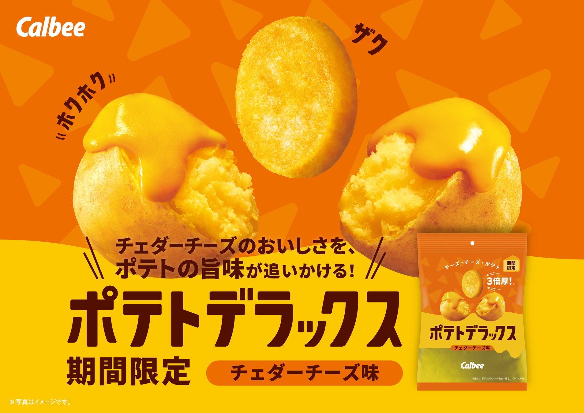 カルビー最厚級のポテトチップスより秋冬にぴったりの新フレーバーが登場!ビーフの旨みで濃厚なチーズの味を引き立てた『ポテトデラックス チェダーチーズ味』