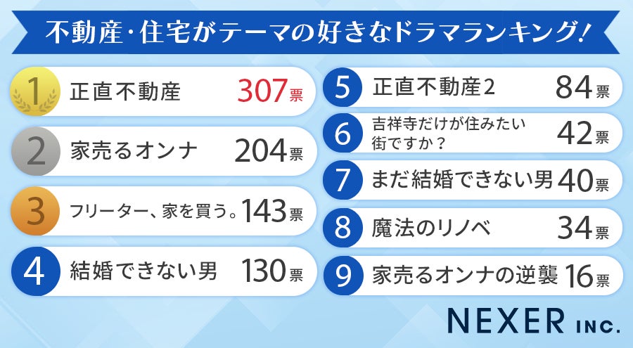 ■不動産・住宅がテーマの好きなドラマランキング!1位は抜群の知名度を誇る・・・?