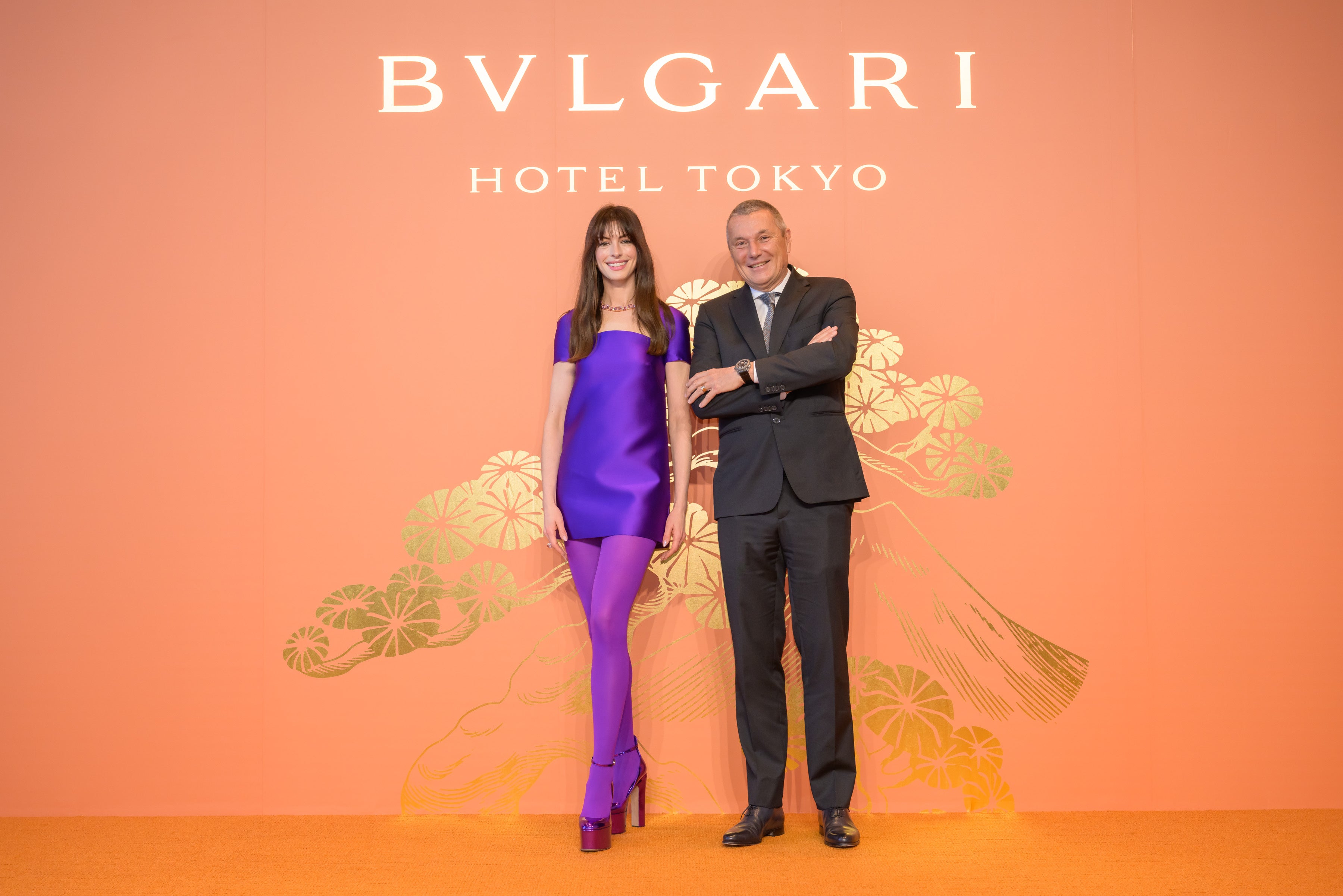 俳優、ブルガリ グローバルアンバサダー アン・ハサウェイ と ブルガリ グループ CEO ジャン-クリストフ・ババン