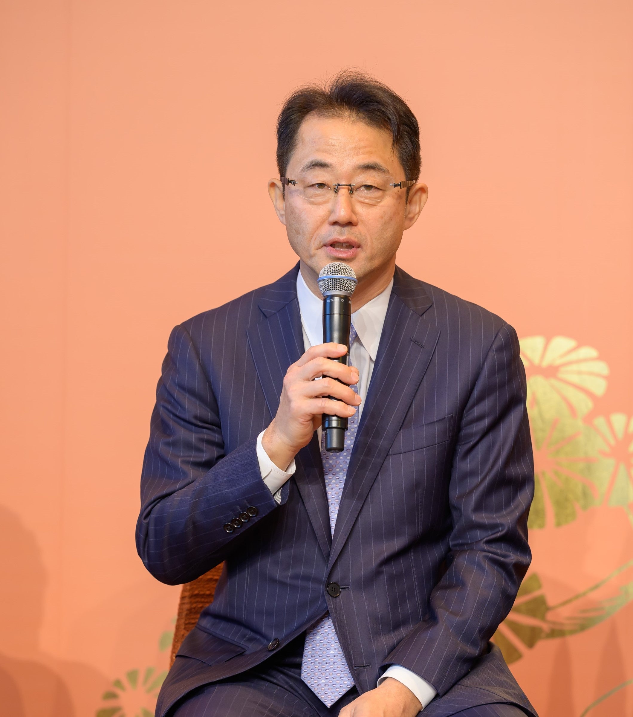 「まずは、ブルガリファミリーのエナジェティックなムードを感じています。そして、ここ数年は家の中の時間が多かったので、みなさんと一緒に同じ場所で素敵な時間を過ごすことが、こんなにも素晴らしいことなんだなと改めて感じた瞬間でありました。またブルガリ ホテル 東京は、イタリアと日本の伝統的なマテリアルがとても素敵に調和しています。本当にブルガリらしい空間になっていますので、ぜひ皆さんも自分のご褒美として、この空間で良い時間を過ごしていただきたいなと思います」