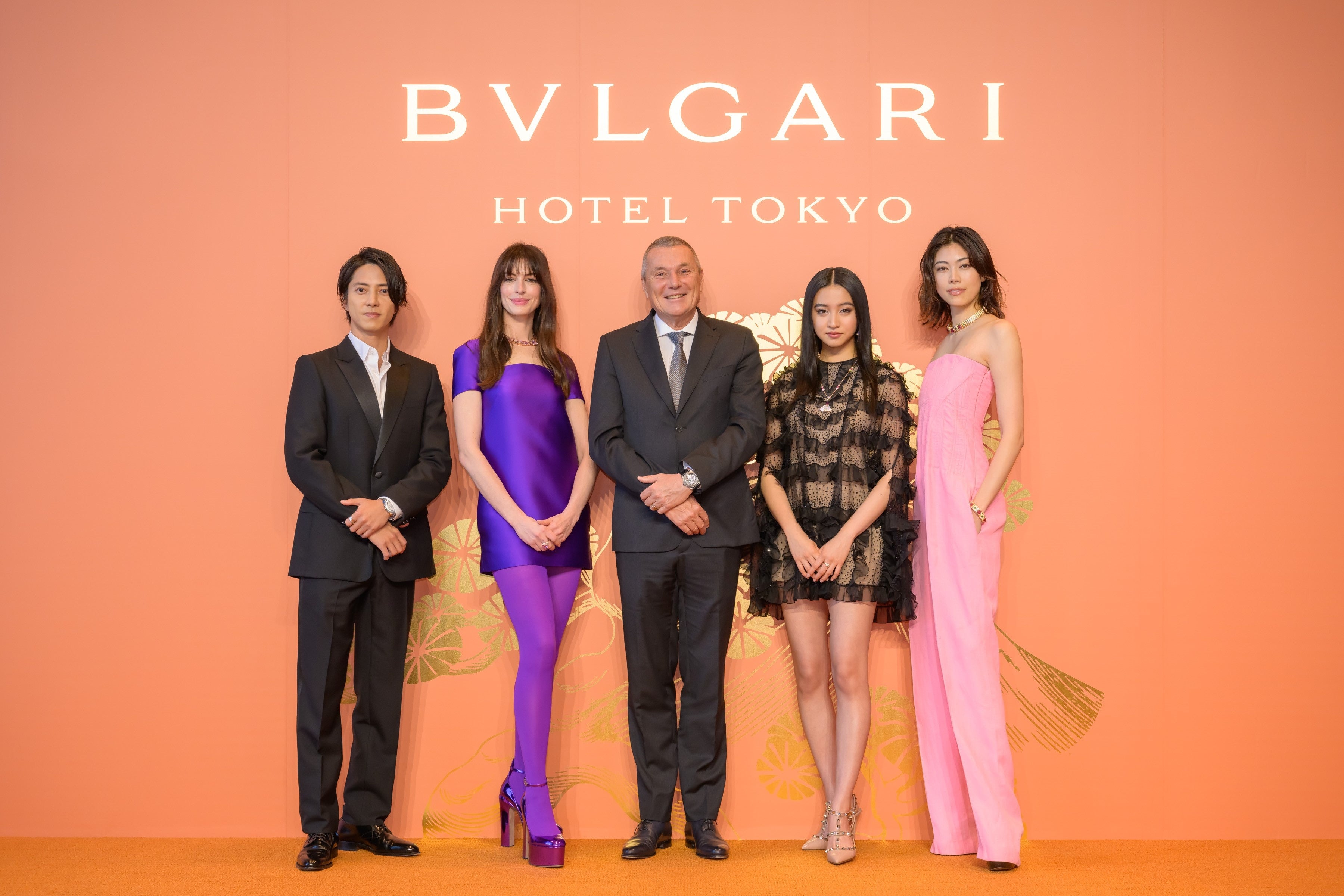 モデル・俳優、ブルガリ アンバサダー Kōki, / 俳優・ブルガリ グローバル アンバサダー アン・ハサウェイ / ブルガリ グループ CEO ジャン-クリストフ・ババン / 俳優・モデル・tefu tefu Inc. クリエイティブ ディレクター、ブルガリ アンバサダー 森星 /俳優・アーティスト、ブルガリ アンバサダー 山下 智久