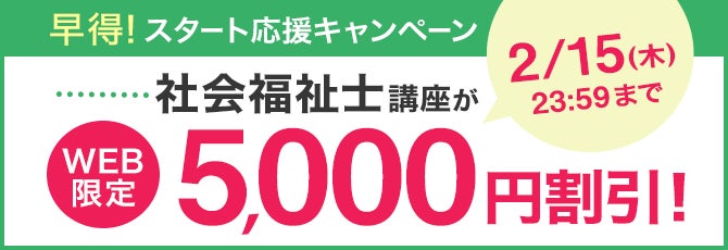 WEBからの受講お申込み限定で、社会福祉士講座の受講料を5,000円割引いたします。