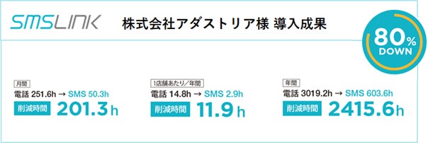 アダストリアは、「SMSLINK」を導入し、電話連絡をSMSによる連絡に変更したことで、以下の成果を獲得しました。