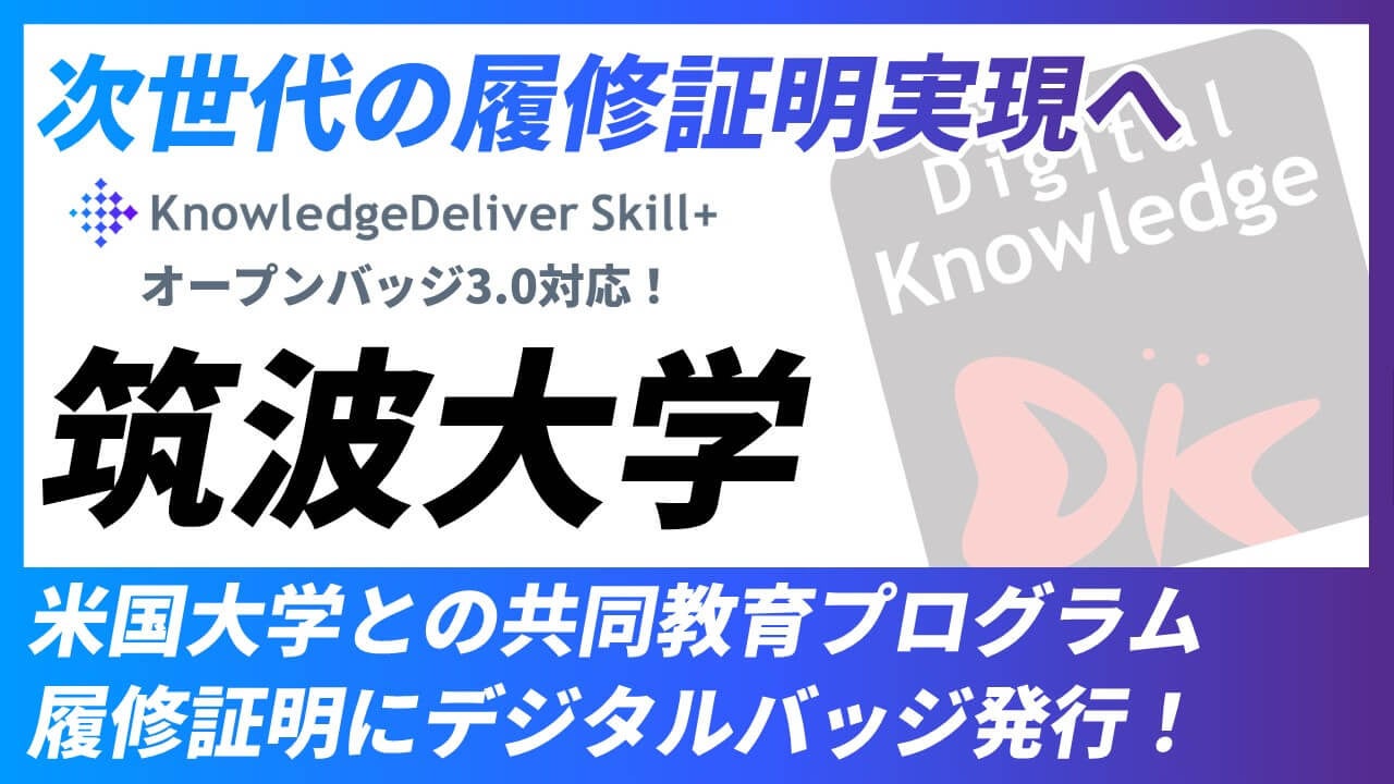 導入実績2000超を誇るeラーニング専門ソリューション企業、株式会社デジタル・ナレッジ(本社:東京都台東区、代表取締役社長:はが弘明)の提供するデジタルバッジ発行サービス『KnowledgeDeliverSkill+』が国立大学法人 筑波大学が取り組む、米国大学との共同教育プログラムに採用されました。