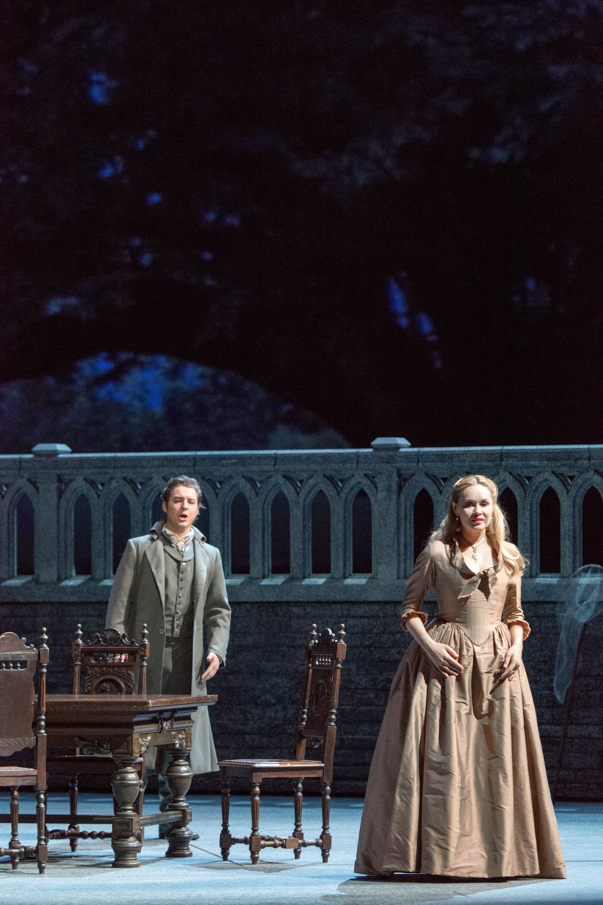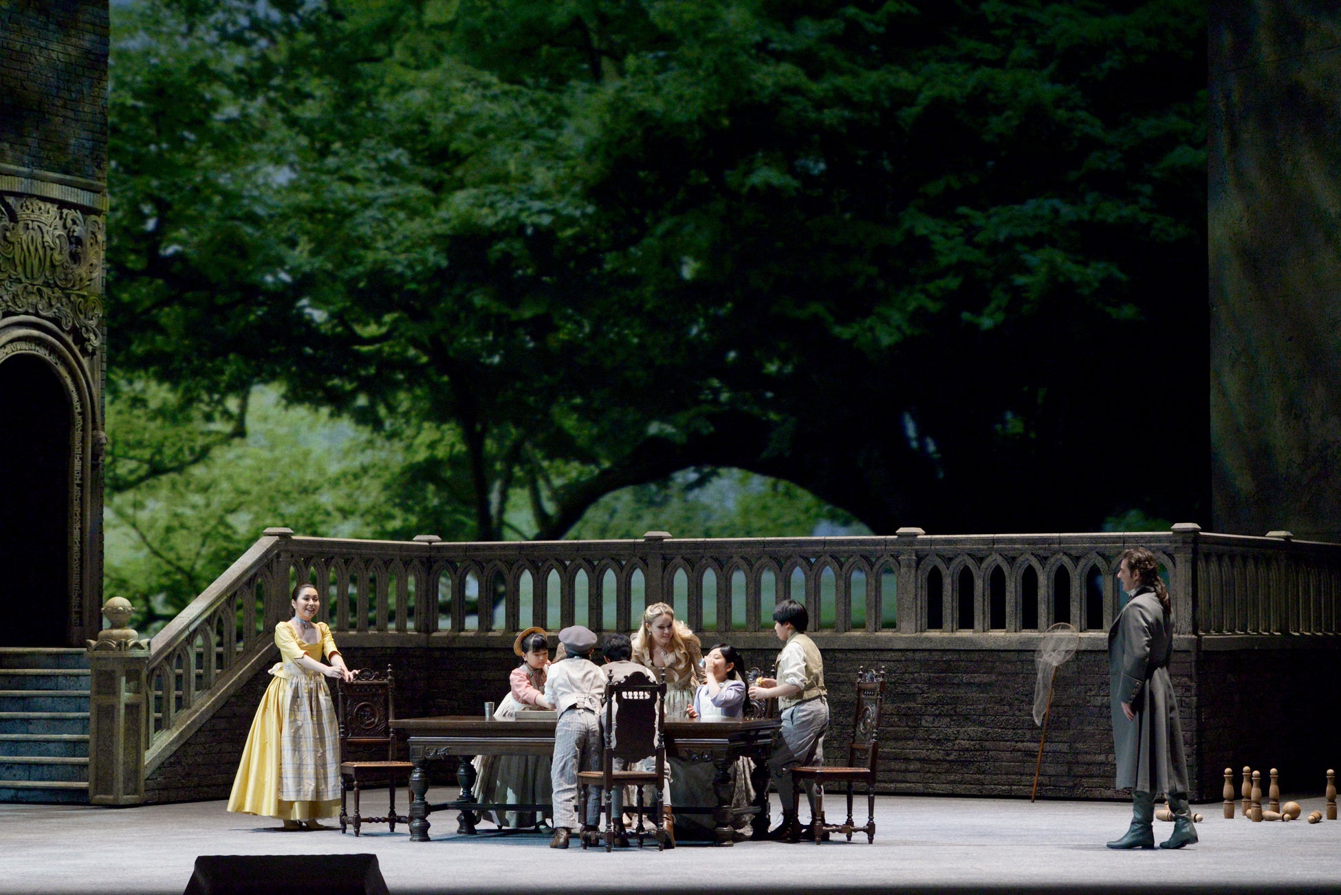 巨匠ニコラ・ジョエル演出版は、美しく写実的な舞台美術が大きな見どころ。ウェルテルの心情に寄り添い、彼が自然を称える冒頭シーンでは18世紀ドイツ・ヴェツラーの町の荘厳で禁欲的な建築の狭間に大樹を投影。舞台美術の色彩上にプロジェクションを重ねて投影し、重厚な建物と輝かしい新緑の対比の美しさ、繊細にゆらめく木漏れ日に劇場じゅうが包まれるような効果が、観客をあっと驚かせます。