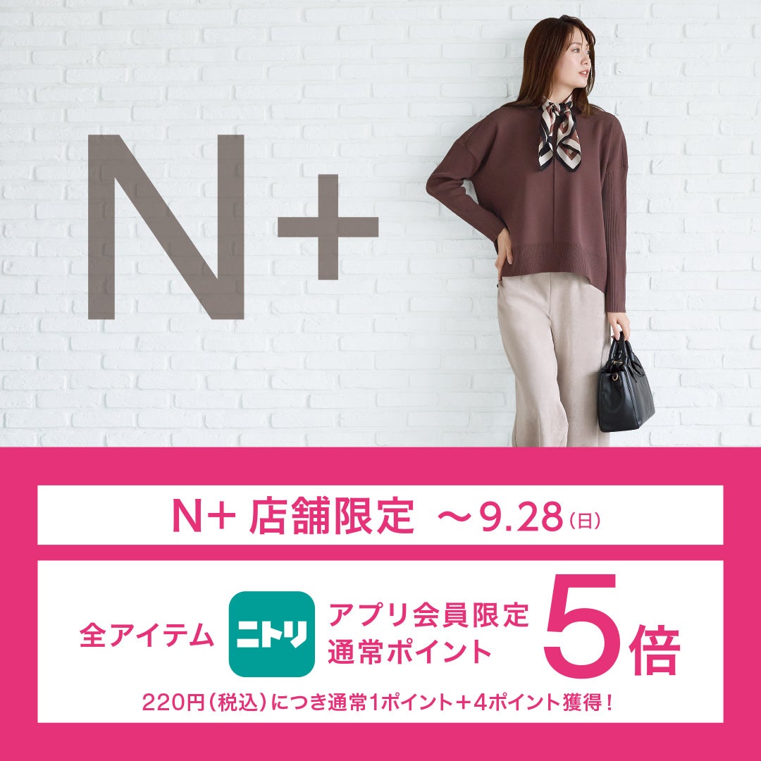 【ニトリのアパレルブランドN+】ニトリアプリ会員限定!通常ポイント5倍キャンペーンをN+全国40店舗にて開催。