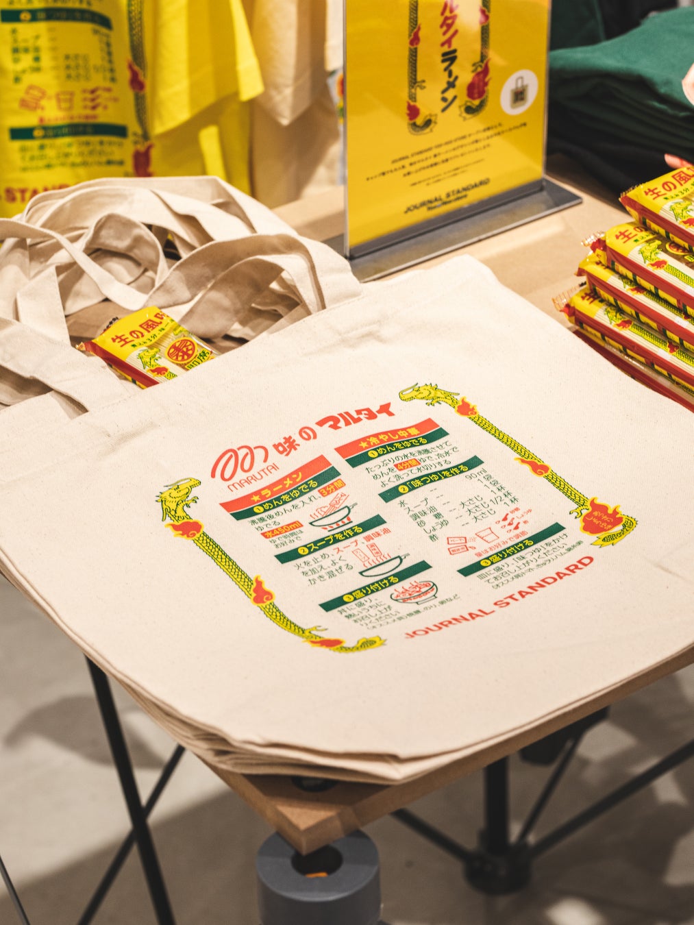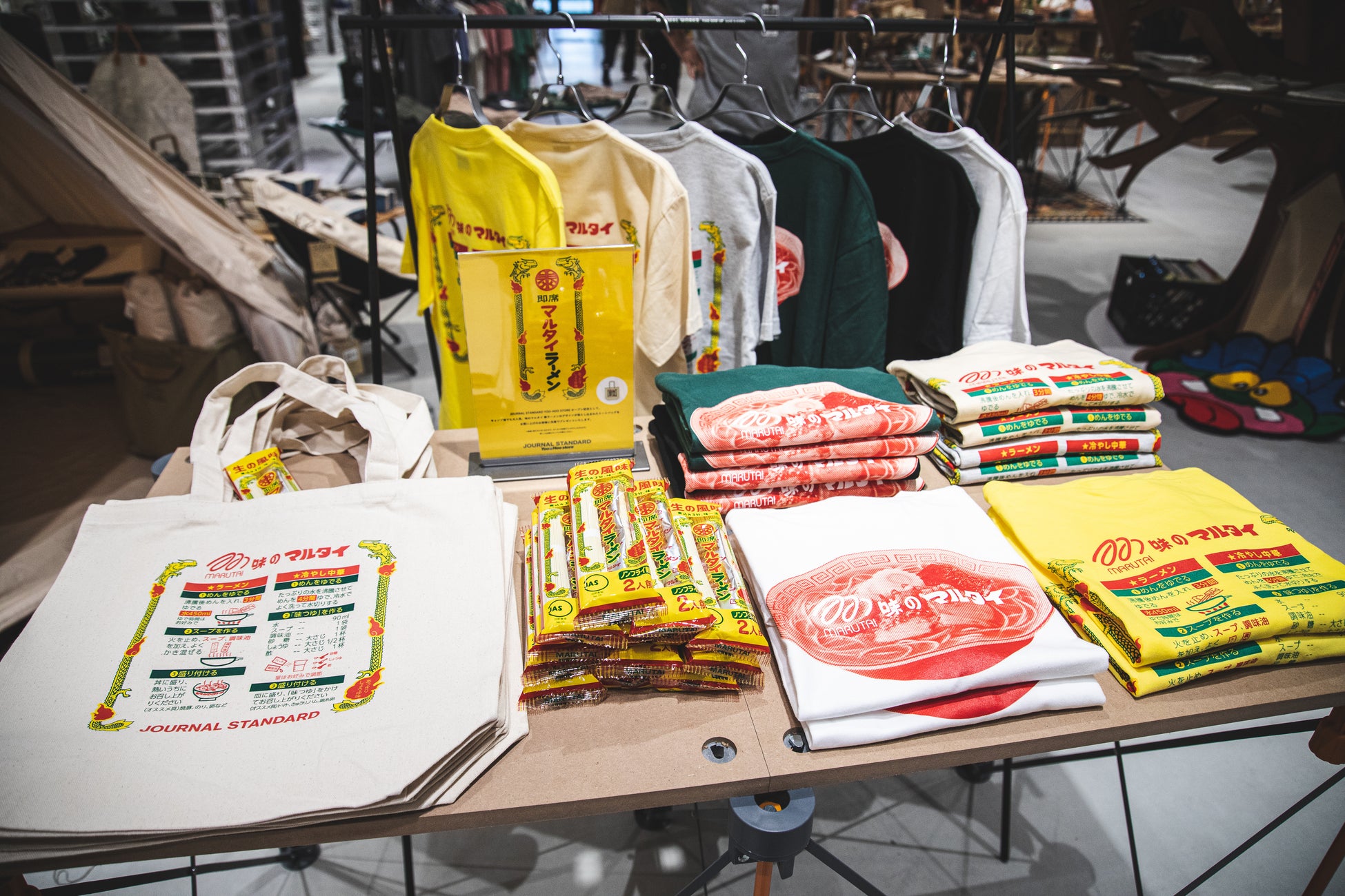 - 店内商品をご購入のお客様にマルタイラーメン×JOURNAL STANDARDトートバッグ&棒ラーメンをプレゼ ント。※無くなり次第終了となります ノベルティに加え、街着はもちろんFES映えも期待できるマルタイラーメンコラボTEEを数量限定でリリース!