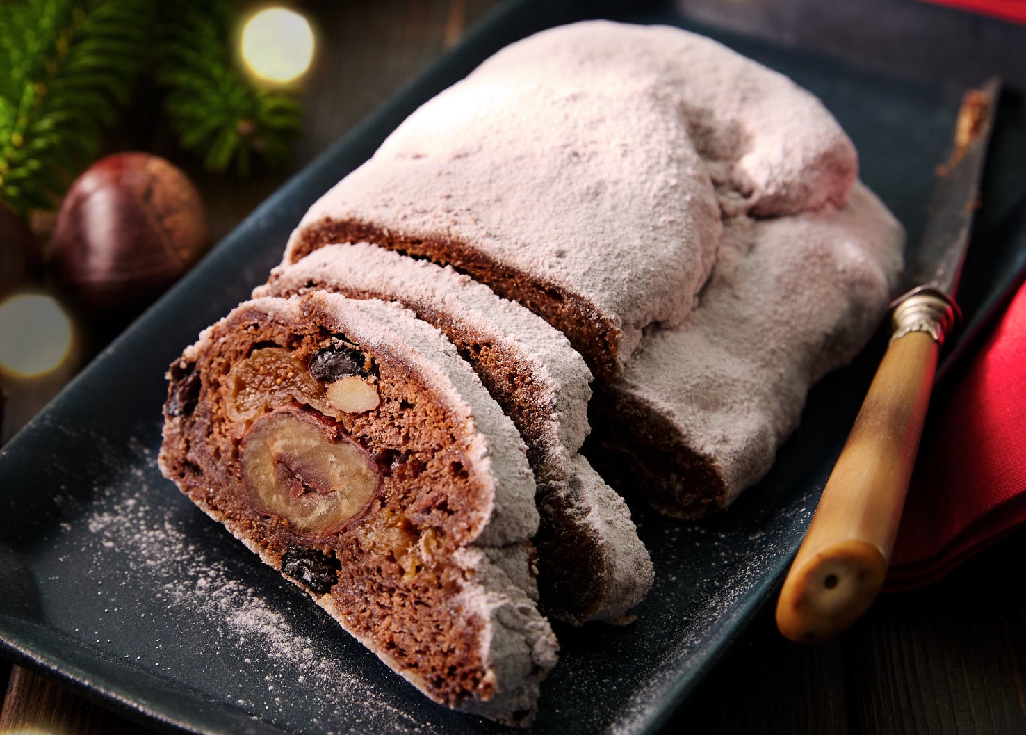 カラメリゼした林檎やラム酒漬けレーズン、オレンジピールを焼き込んだ、7種のスパイスの芳醇な香りが広がる風味豊かなシュトーレン。
