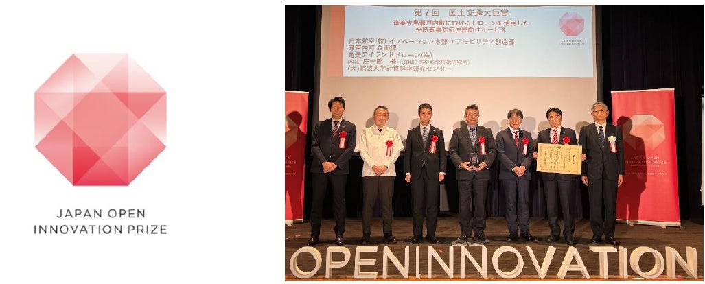 日本航空株式会社(以下、JAL)、奄美アイランドドローン株式会社(以下、AID)、鹿児島県大島郡瀬戸内町(以下、瀬戸内町)、国立研究開発法人防災科学技術研究所(以下、防災科研)、国立大学法人筑波大学(以下、筑波大学)は、「奄美大島瀬戸内町におけるドローンを活用した平時・有事対応の住民サービス」における共同の取り組みにより、2025年2月5日、内閣府主催の第7回日本オープンイノベーション大賞において国土交通大臣賞を受賞しました。