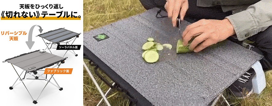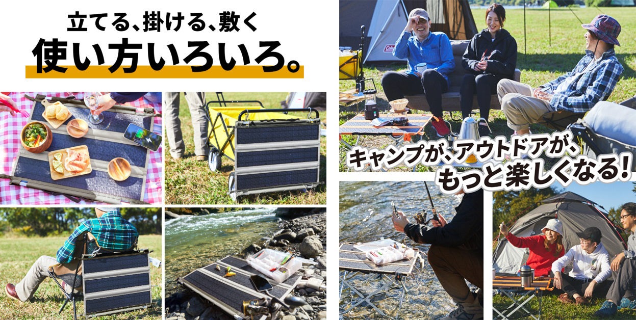 2.スタンドテーブル、直置きフラットテーブル、ソーラーパネルとしてテントに装着など使い方はさまざま