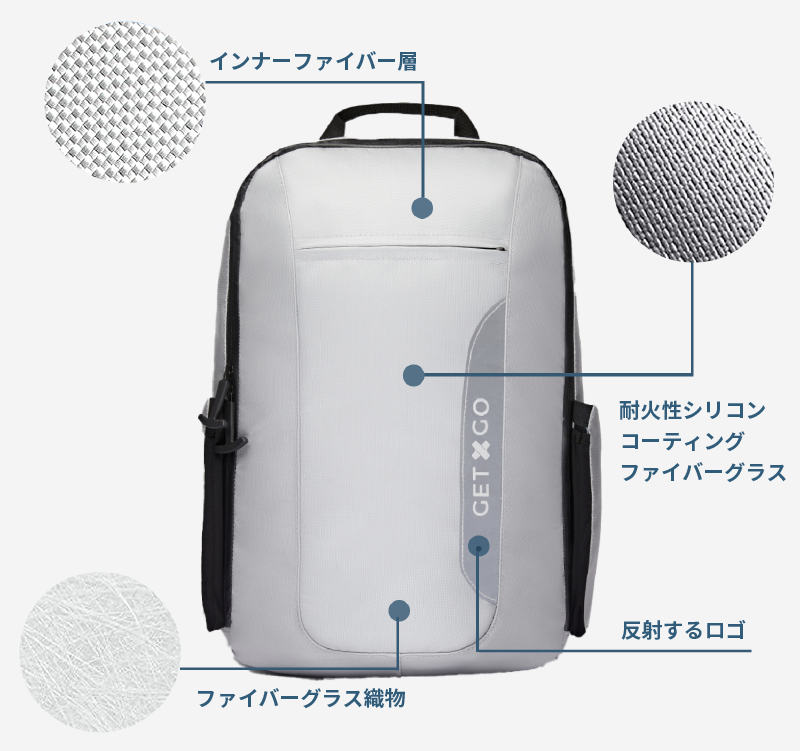「GetxGo」のバックパックなら、高品質の二層コーティングされたグラスファイバー構造で、必需品を風雨から守ります。