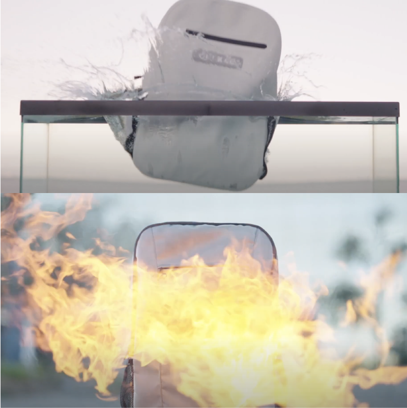 耐水・耐火構造であらゆるものから守るバックパック!