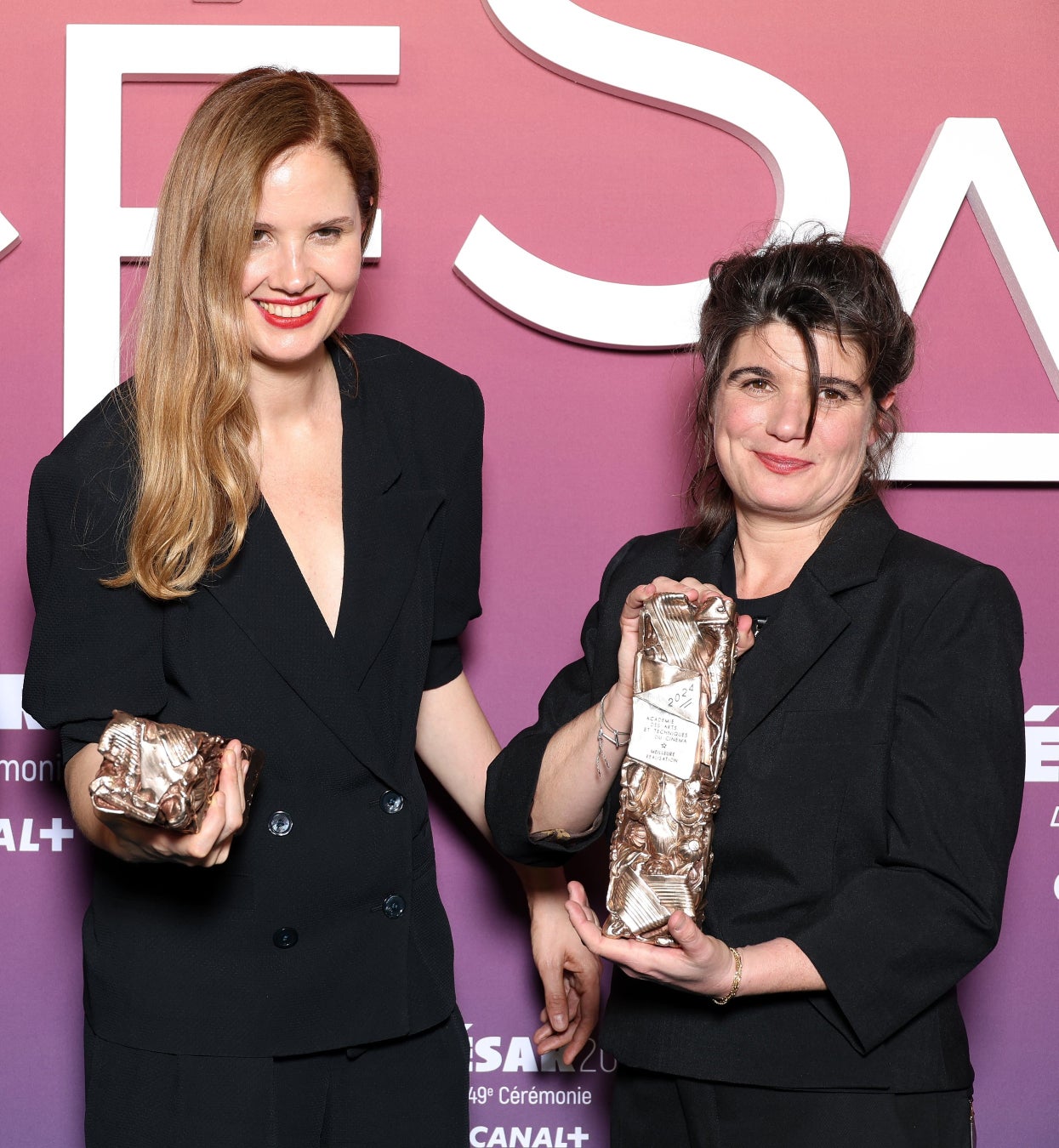 第49回セザール賞授賞式で、最優秀映画賞、脚本賞と監督賞を受賞したジュスティーヌ·トリエと、最優秀映画賞を受賞したマリー=アンジュ·ルシアーニがルイ·ヴィトンを着用して出席しました。
