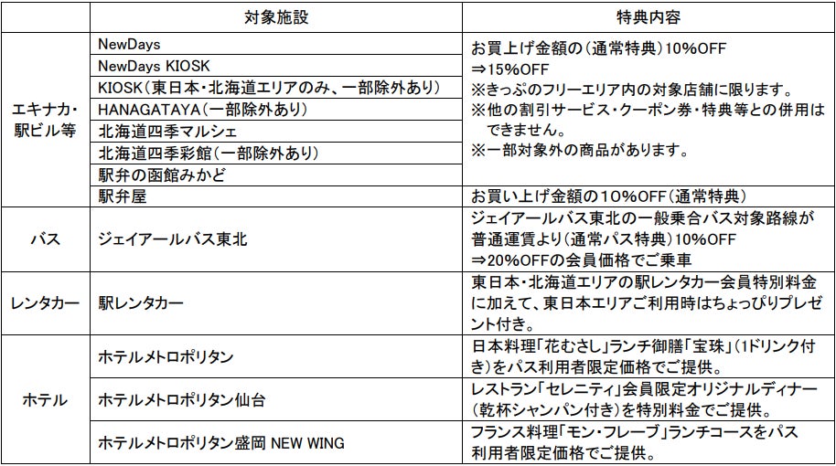 【利用方法】 きっぷの有効期間内に下記対象施設でパスをご提示ください。