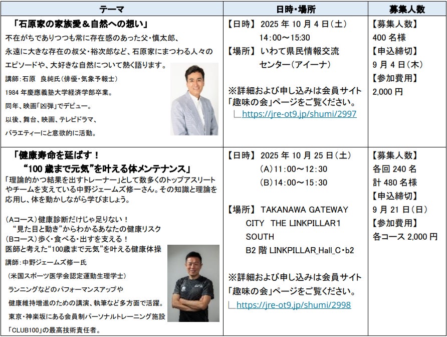 ※詳細は会員誌9月号および会員サイトでご案内いたします。