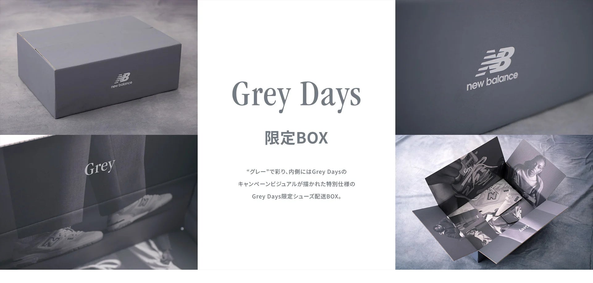スペシャルサイト: https://shop.newbalance.jp/shop/e/eEnb-greydays