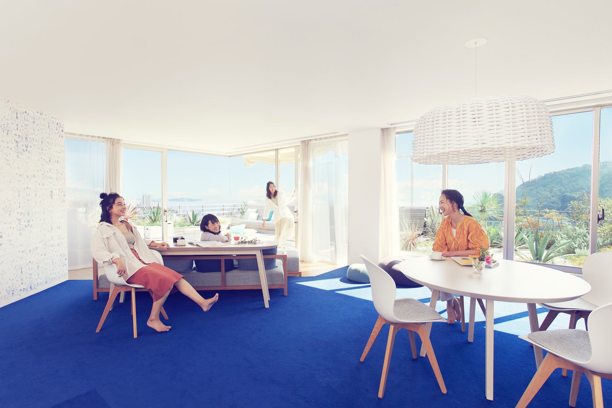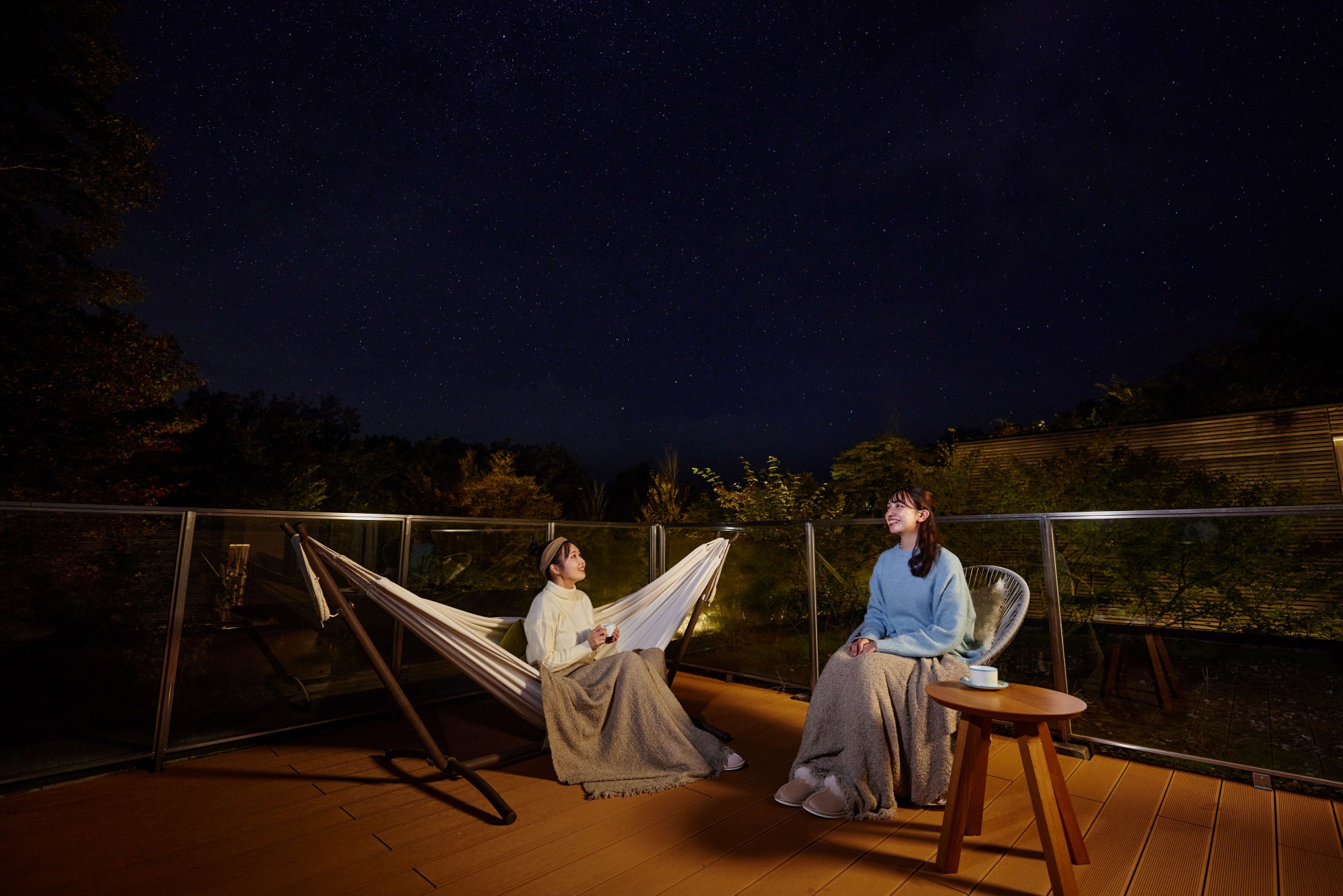 本プランは、60㎡以上の広さがある各施設イチオシのスイートルームで贅沢な滞在を満喫できます。例えば、リゾナーレ熱海のテラスリビングスイートルームはテラスエリアを含め開放的なリビングルームで絶景を楽しめるスイートルームです。 リゾナーレ八ヶ岳では、ワインリゾートを象徴するボルドーカラーを基調にしたメゾネットタイプのスイートルーム。リビングスペースとなる2階部分にはゆったりとしたローソファ配置し、ワイン蔵をイメージした格子状の棚に置かれた本やワインセラーが常備。広々とした空間で、友人と思い思いの時間を過ごせます。