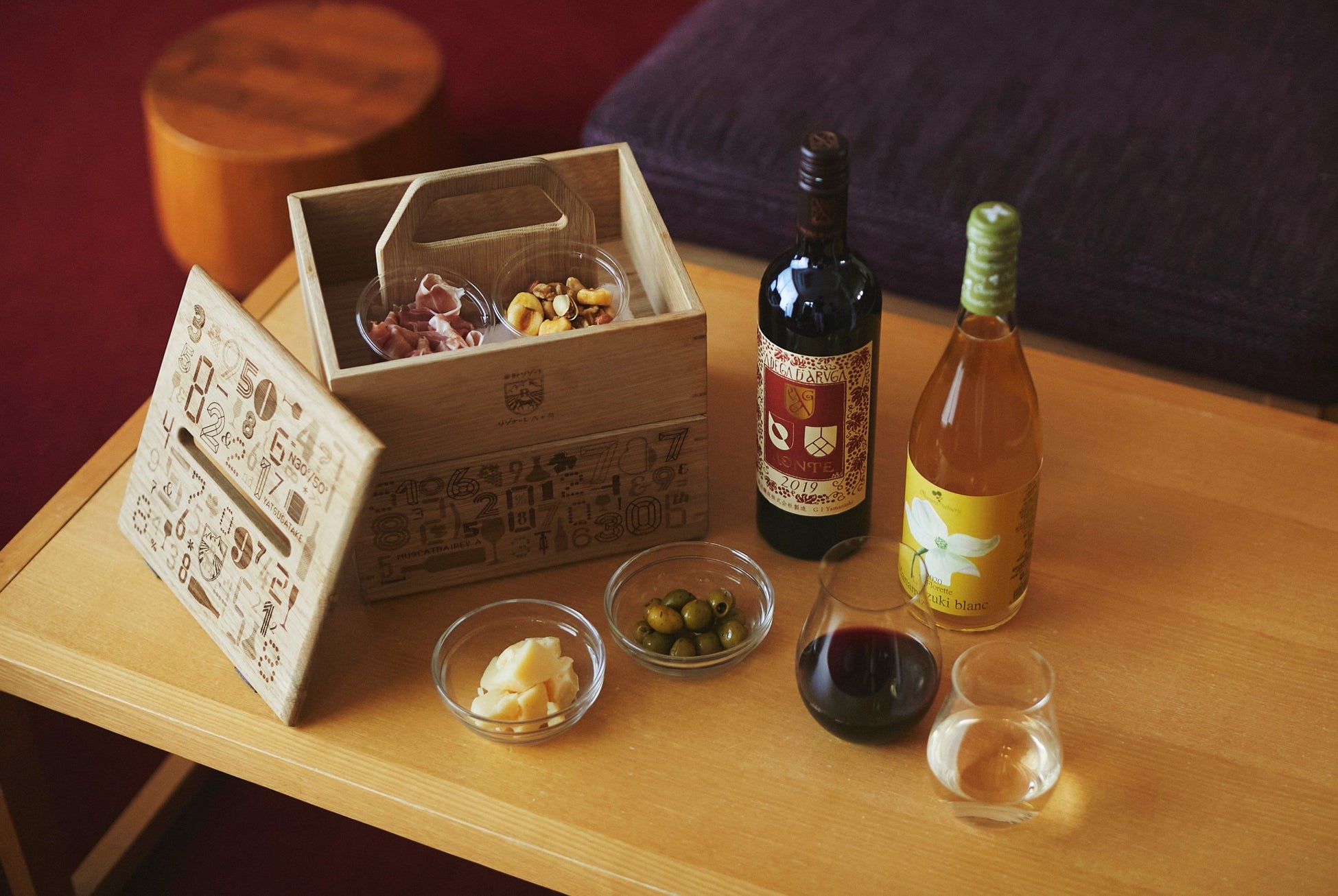 客室での滞在も大切な思い出のひとつです。滞在をより充実させるアイテムとして、各施設がセレクトしたドリンクを用意します。リゾナーレ八ヶ岳はワインとおつまみが入ったVINO BOXを、リゾナーレ那須では、栃木県ならではのいちごのワインを用意。地域ならではの味覚を味わいながら、リラックスしたひとときを過ごせます。