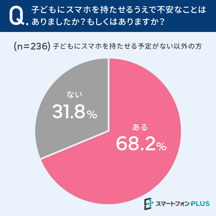 68.2%と7割近くの方が、子どもにスマホを持たせるうえで「不安がある・あった」と回答しています。