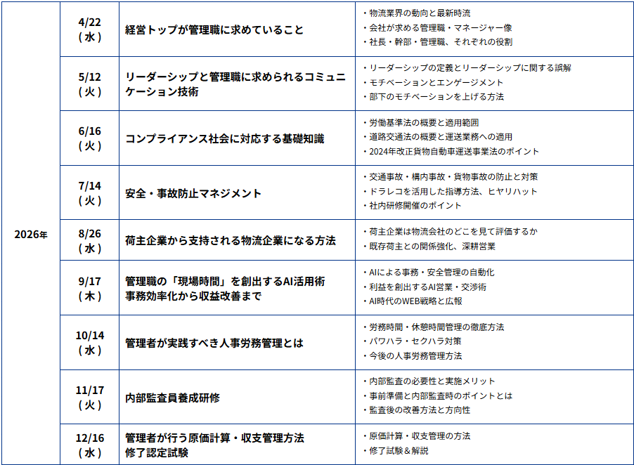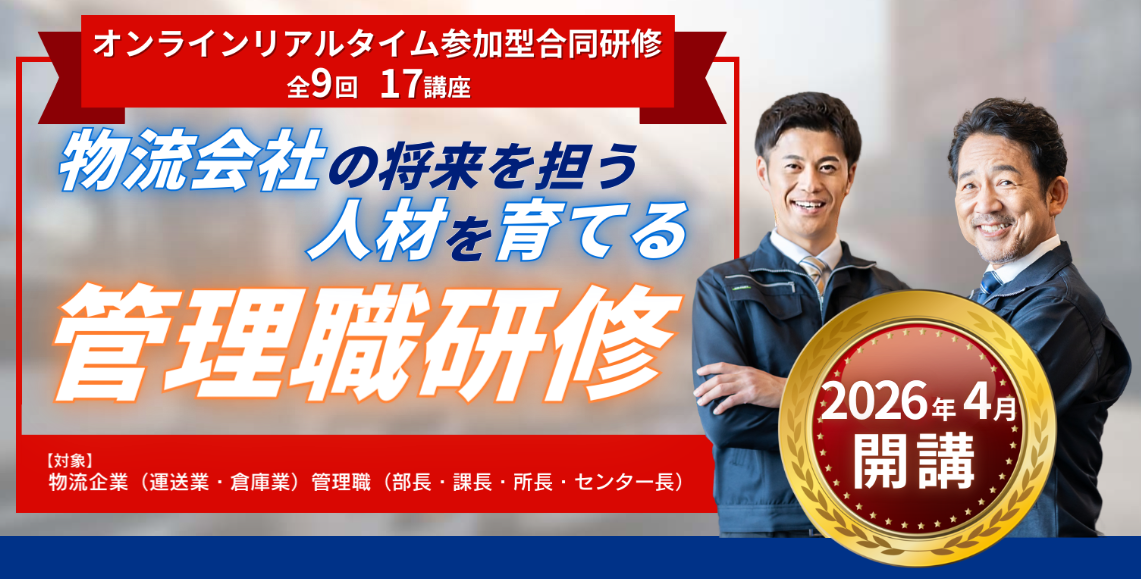 【2026年4月受講スタート】「物流会社の将来を担う人材を育成する管理職研修」の受講申込み受付を開始|株式会社船井総研サプライチェーンコンサルティング
