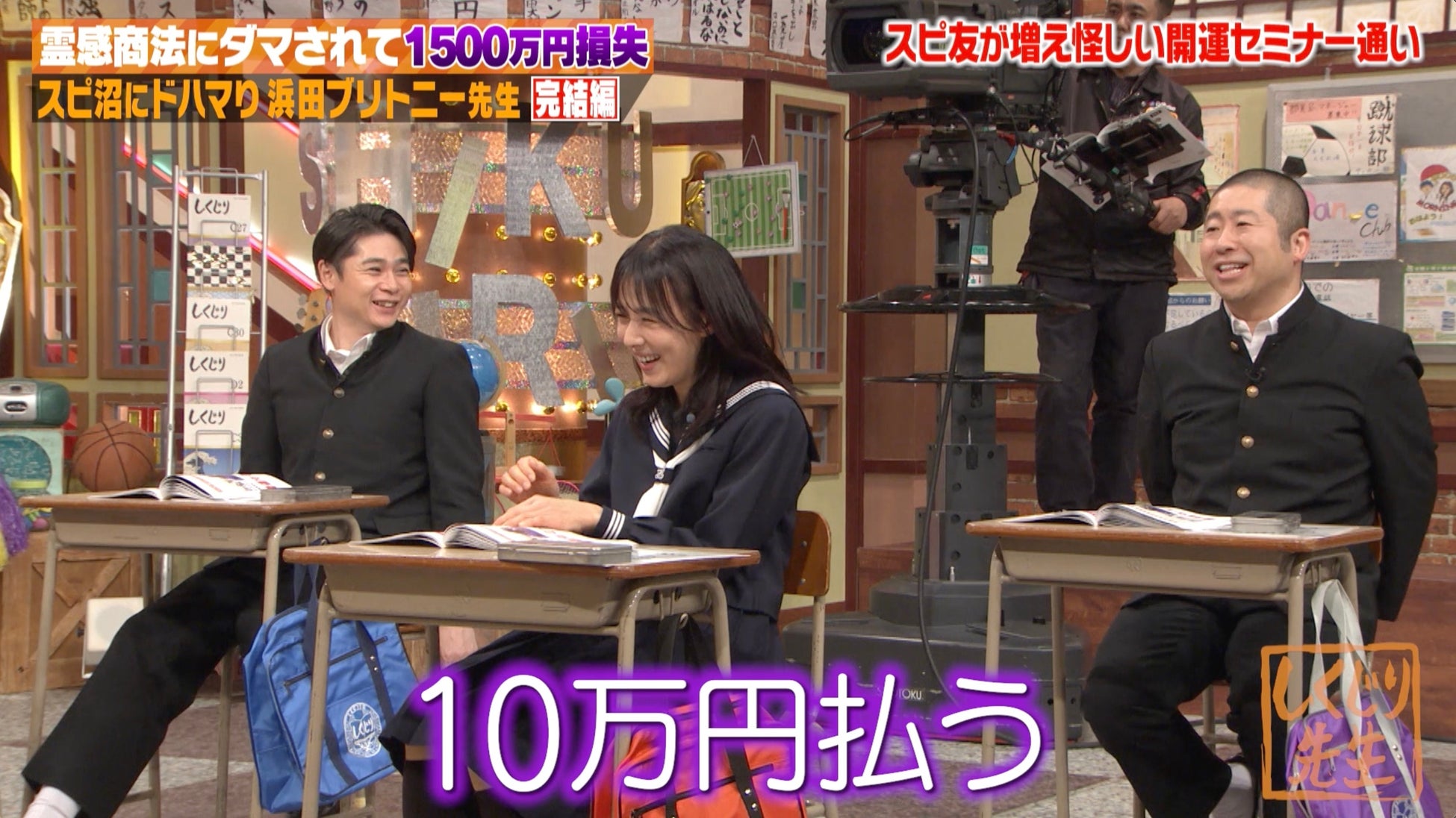 お金・友人・時間を失ってしまったブリトニー先生は、その後スピリチュアルで知り合った“スピ友”爆増で、よりディープな“スピ漬け生活”に突入していくことに。開運セミナーに参加したり、“スピ沼”の最終段階だという“宇宙エネルギー”を集めるところまで行きついてしまったブリトニー先生。「宇宙人の方を呼んで講演することもあります」「タイムトラベラーの方もいる」と語った怪しい開運セミナーの実態や、“宇宙エネルギー”の解説に生徒たちはツッコミが止まらない事態となりました。