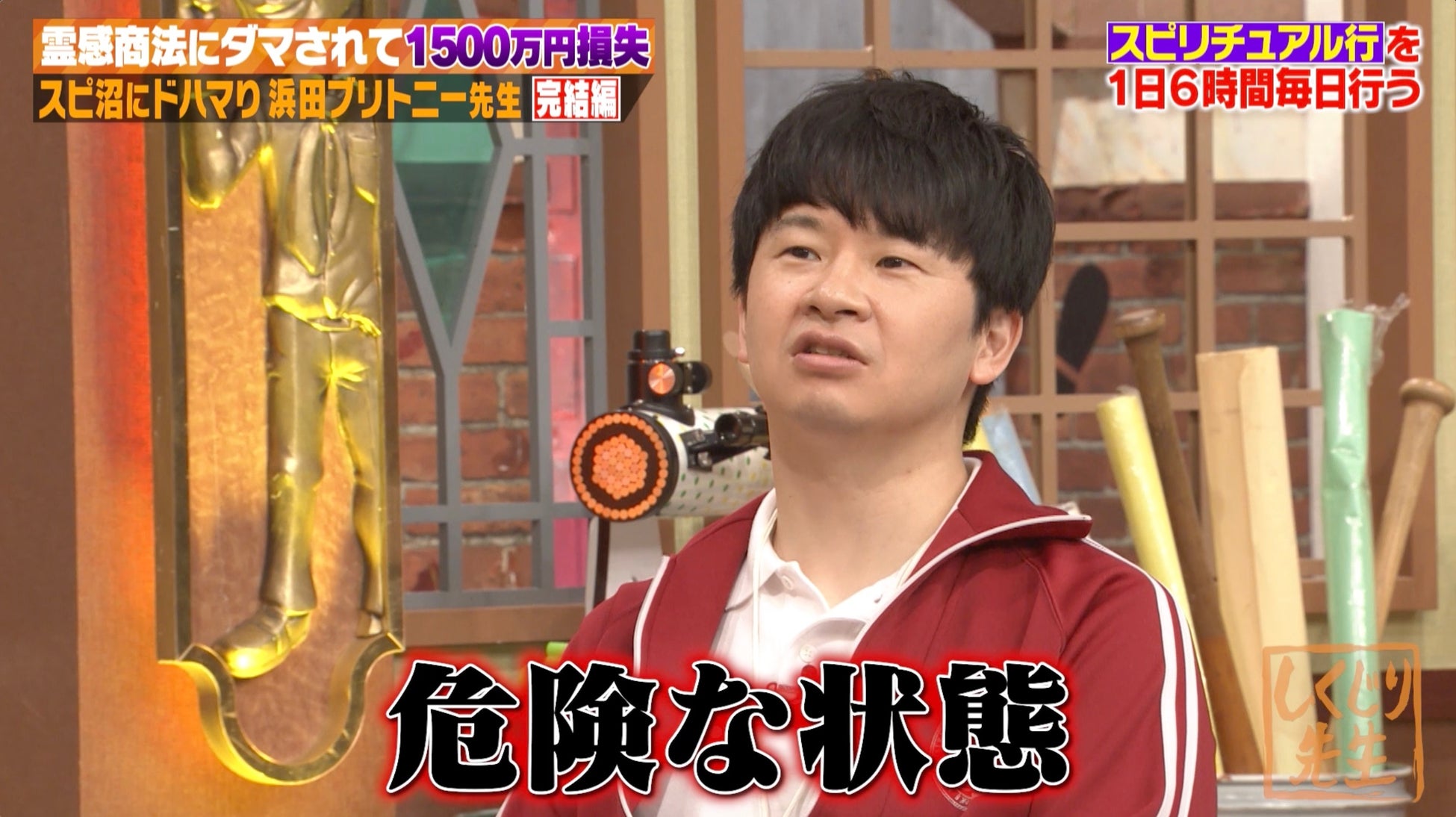 番組前半では、スピってる人が集めがちな2大アイテムである“石”と“塩”について解説したほか、運気が上がると言われてやっていた“スピリチュアル行”で「1日6時間」の時間を取られていたと明かしたブリトニー先生。実際にやっていた“行”一覧を公開し、衝撃の内容にお笑いコンビ・オードリーの若林正恭さんも思わず「危険な状態ですね」と驚きの声を上げる場面もありました。