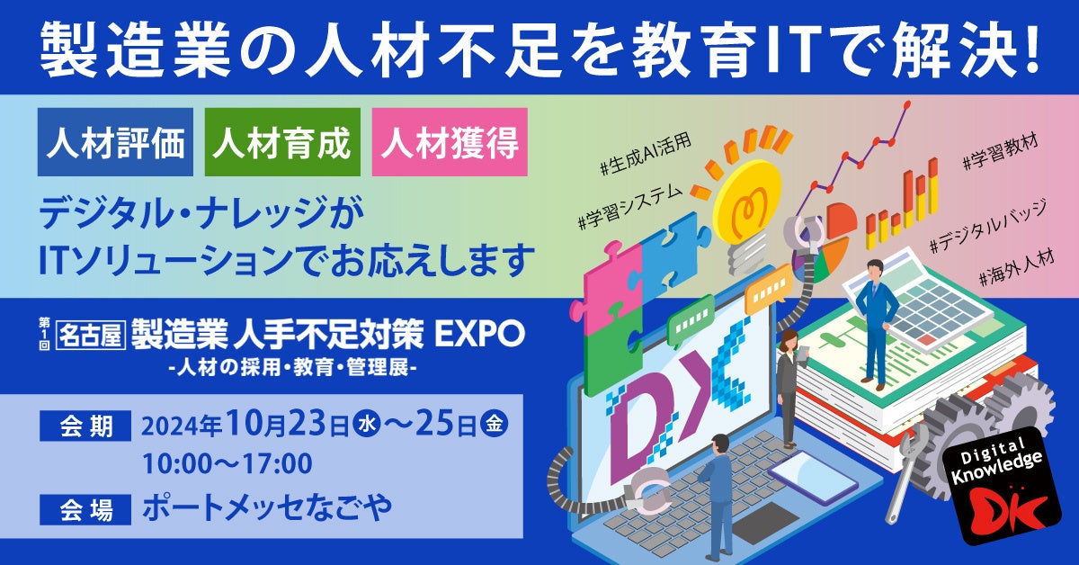 「製造業の人材不足を教育ITで解決!」株式会社デジタル・ナレッジ、初の製造業人手不足対策EXPOに出展。生成AI、デジタルバッジ、最新LMS、海外人材 10/23(水)~25(金)ポートメッセなごや