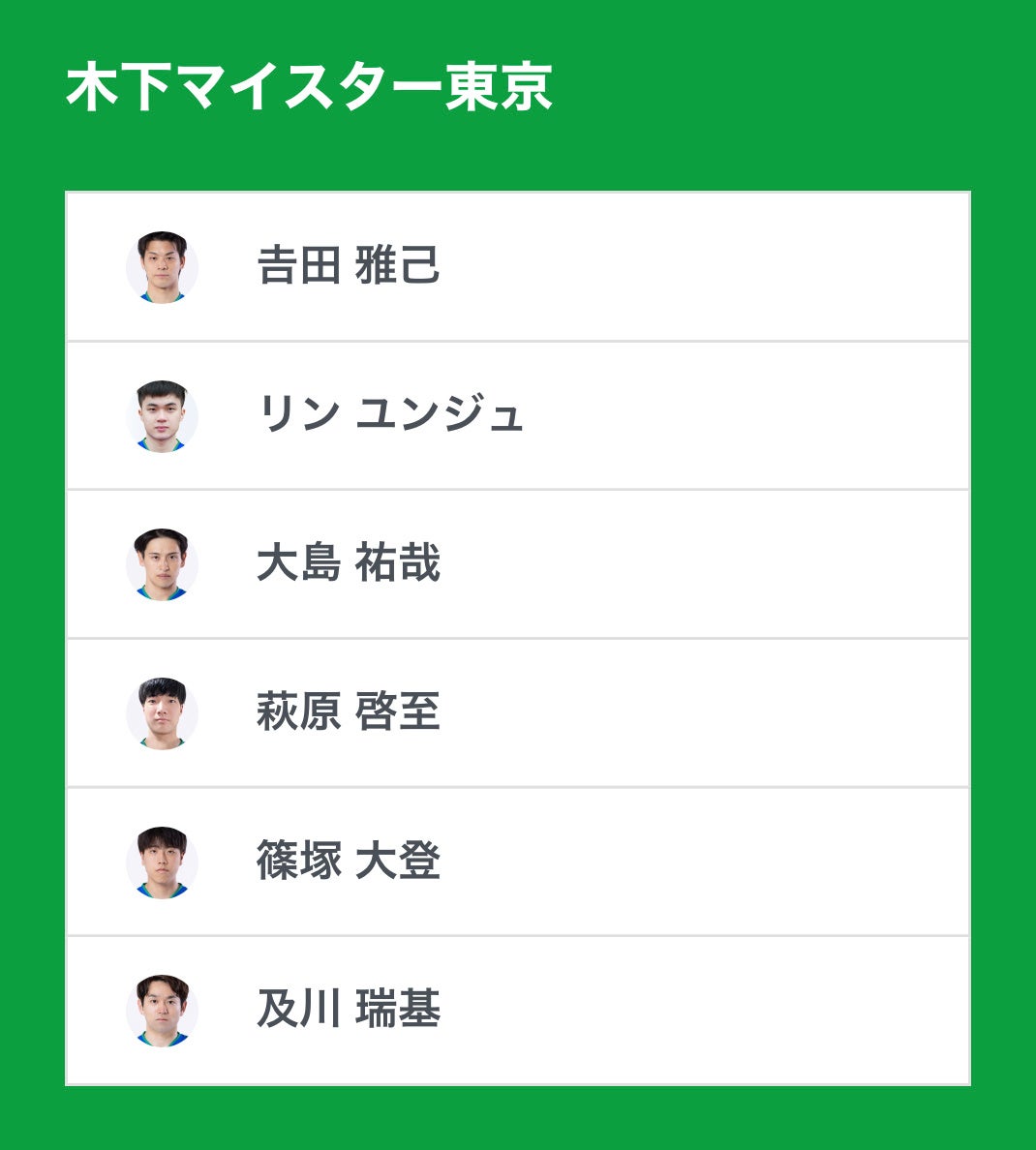 ノジマTリーグ2023-2024シーズン公式戦 11月11日(土) 木下マイスター東京 vs 琉球アスティーダ ベンチ入りメンバーを発表いたします。