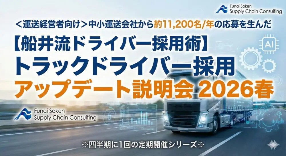 2026年3月11日(水)、株式会社船井総研サプライチェーンコンサルティング(本社:東京都中央区、代表:橋本直行、以下「船井総研SC」)の経営コンサルタントが運送会社のドライバー採用について最新動向を解説します。
