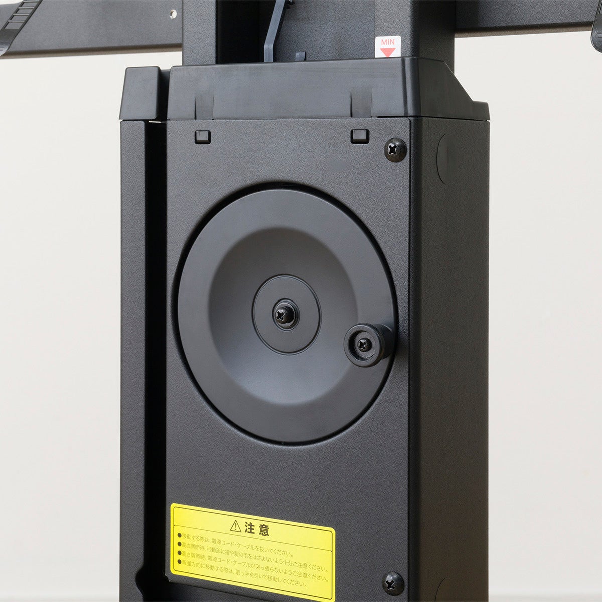 一般的なテレビスタンドは高さ調節時に一度テレビを取り外す必要があります。本商品はテレビを取り付けたまま高さ調節ができるよう、昇降最大ストローク350mmの無段階高さ調整機能を搭載しました。軽い力で回せる“くるくるハンドル”で視聴スタイルに合わせて簡単に高さを調整できます。