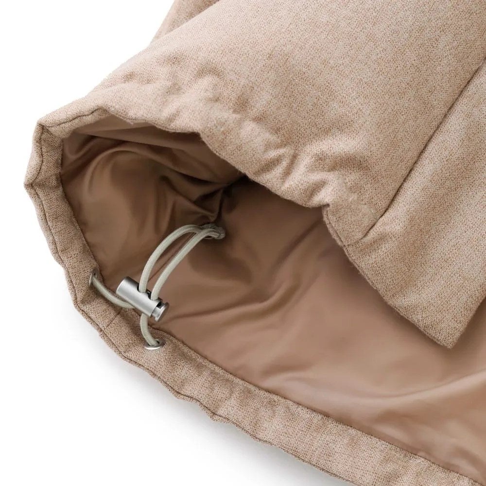 内側のドローストリングで、絞りの調節が可能に。自分好みのフォルムが楽しめます。