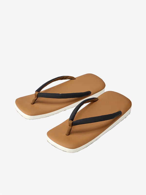 Goldwinが掲げる“自然と都市をつなぐ”という思想と、関づか氏の手仕事による履物づくりが出会い、日本の伝統と現代の機能性が出会う特別な一足が誕生しました。デザインは、履物職人・関づか氏が展開する定番モデルをベースに、日本古来の履物文化を尊重しつつ、現代のライフスタイルに自然と溶け込むよう再構築されたものです。台には、上質な天然皮革を採用し、ソールには登山靴に用いられる優れたグリップ力と耐久性を誇るVibram Sole(ヴィブラムソール)を搭載。さらに、鼻緒部分にはアパレル生産工程で発生した残布を再利用し、環境への配慮と機能性、足をやさしく包み込むような設計を両立させました。