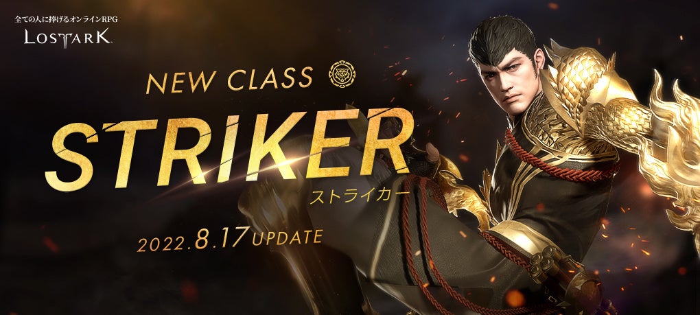 株式会社ゲームオン[本社:東京都渋谷区、代表取締役社長:文 智秀(ムン ジス)]は“すべての人に捧げるオンラインRPG”『LOST ARK』(以下『ロストアーク』)において、本日、新クラス「ストライカー」を実装いたしました。また、「ストライカー」実装を記念して、「無料ジャンピングチケット」の配布やストライカーをプレイすることで一気に成長できる「ストライカースタートダッシュイベント」を開催しております。