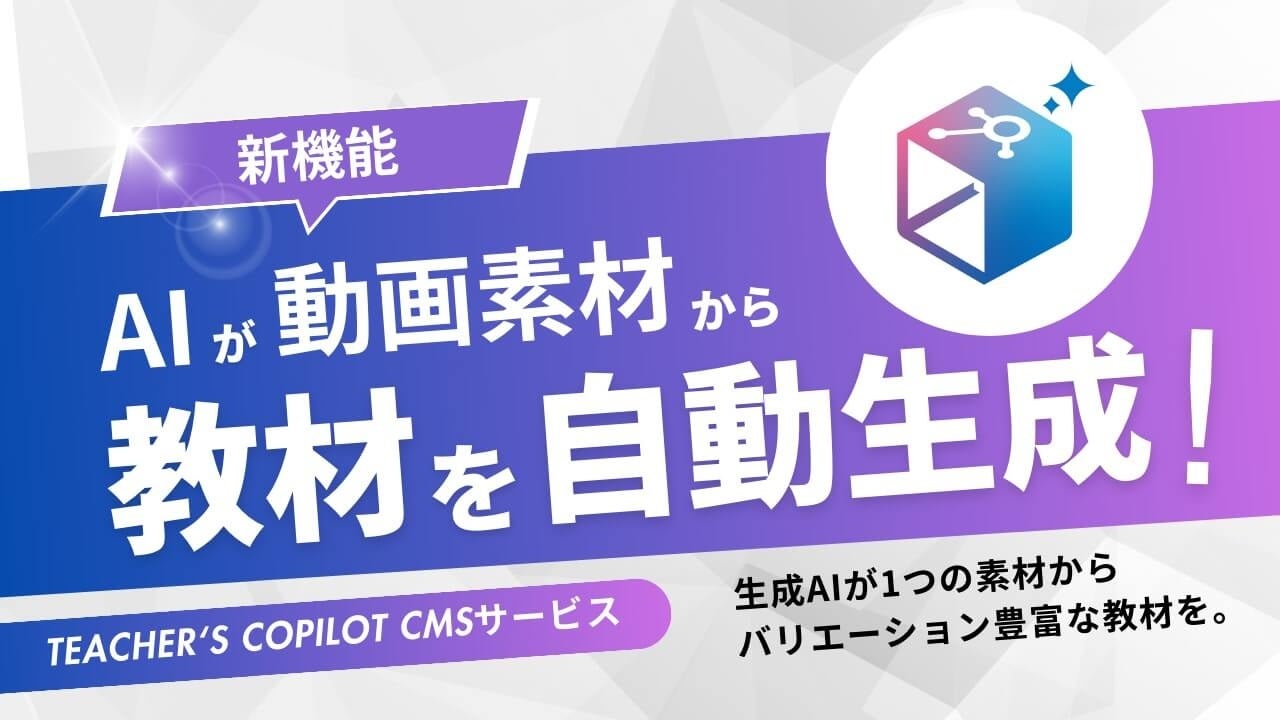 すぐに使える学びのアシスタントAI 「Teacher’s Copilot CMSサービス」 動画からの素材生成機能を新たに追加。