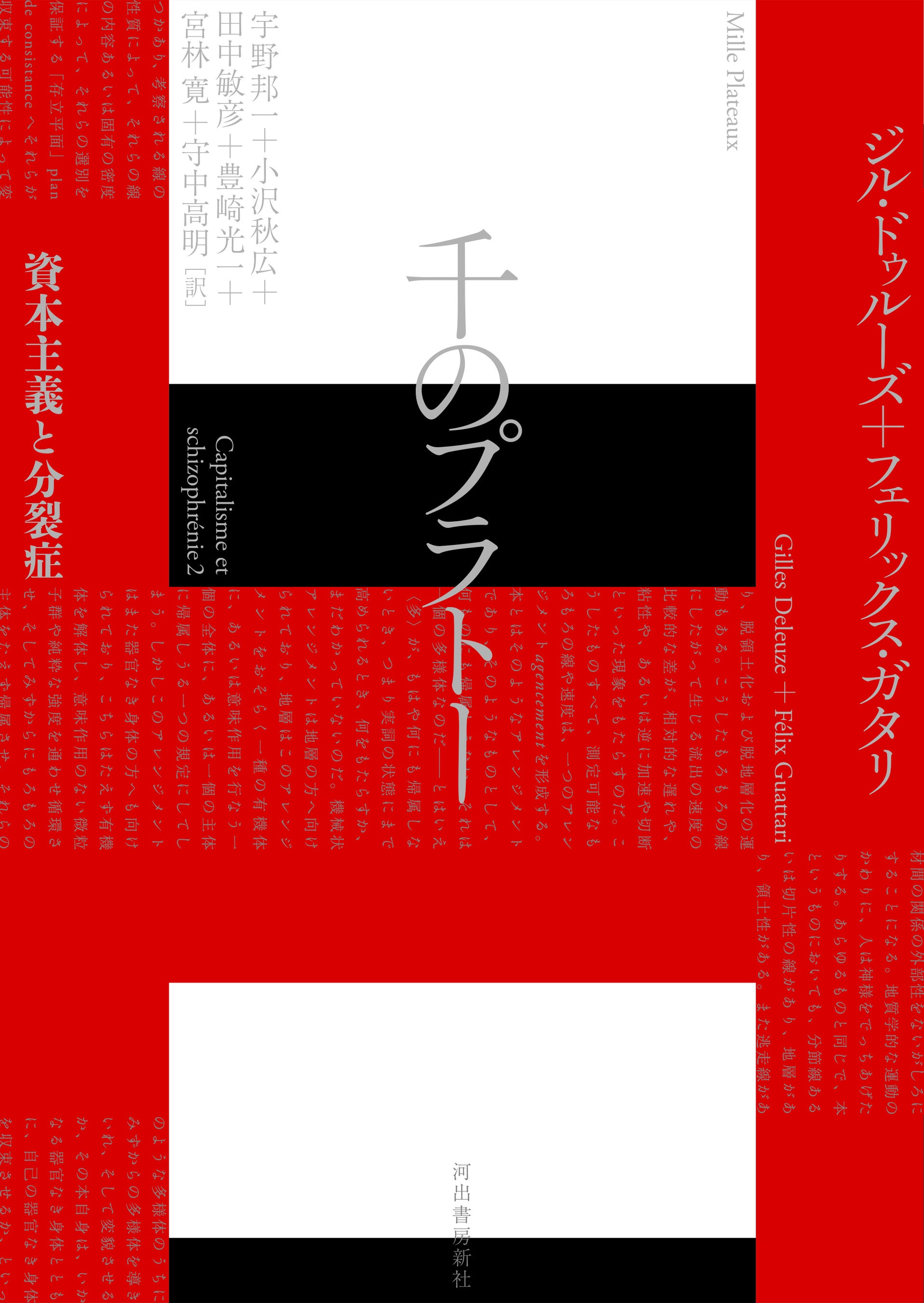 株式会社河出書房新社(本社:東京都新宿区 代表取締役:小野寺優)は、ジル・ドゥルーズとフェリックス・ガタリによる共著『千のプラトー──資本主義と分裂症』(宇野邦一他訳)を2026年2月27日に刊行します。