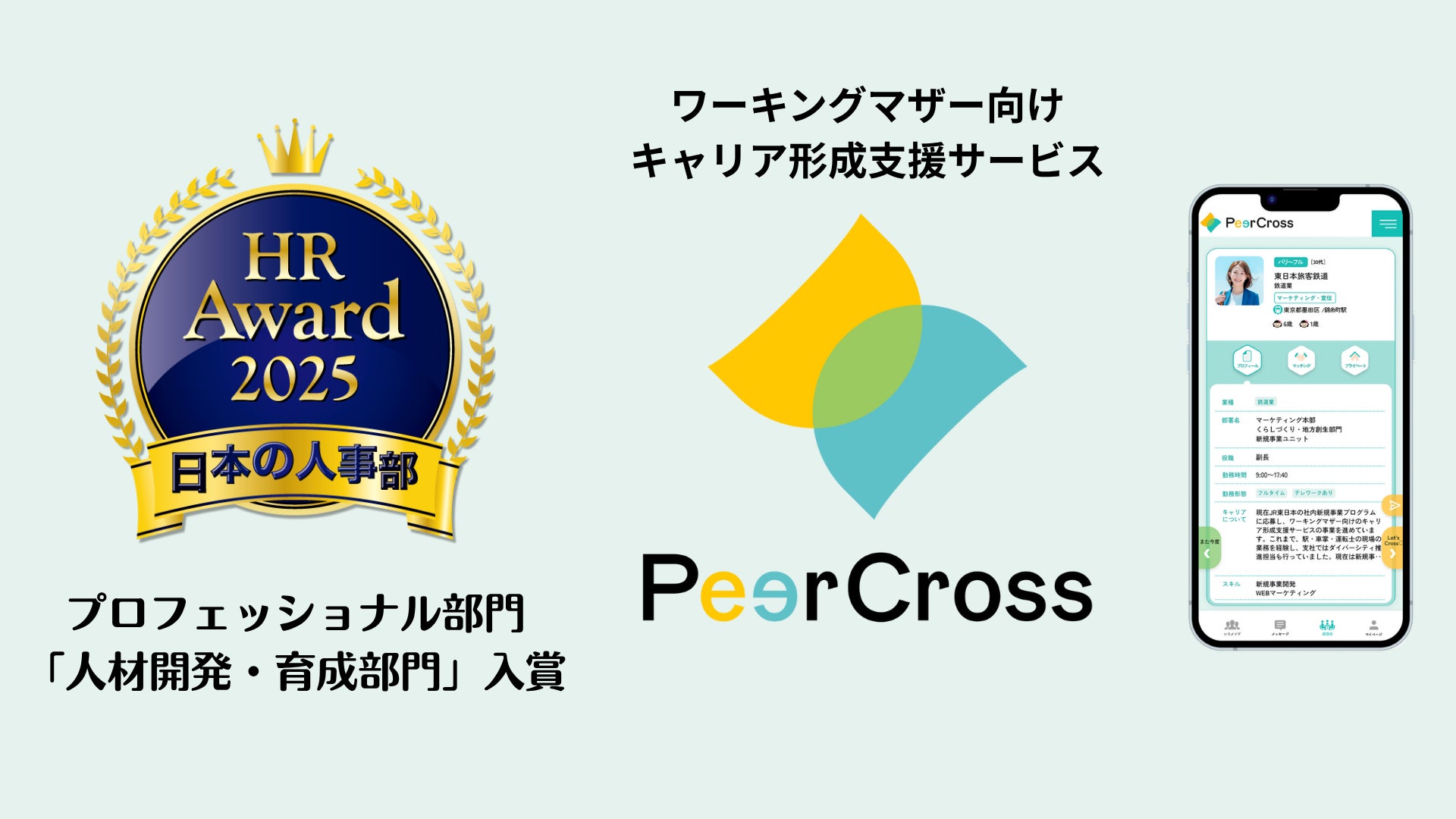 〇JR東日本が提供するワーキングマザー向けキャリア形成支援サービス「PeerCross」が、採用・育成、組織開発の表彰制度、日本の人事部「HRアワード2025」(主催:「HRアワード」運営委員会、後援:厚生労働省)のプロフェッショナル部門に入賞しました。今回で14回目となる「HRアワード」で当社として初めての入賞となります。また、7月15日より、「HRアワード」公式サイトにて、最優秀賞・優秀賞候補を選出する投票受付が始まりました。