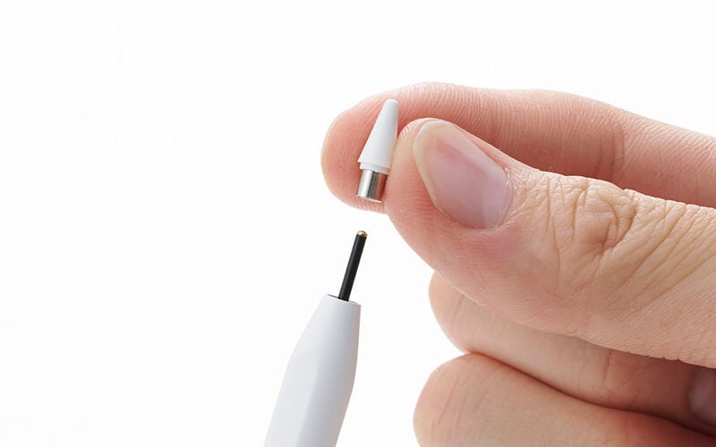 iPad用モデルは、ペンの傾きを検知して線の太さを調整できるほか、手のひらとの接触による誤動作を防ぐパームリジェクション機能も搭載。対応するApple Pencilのペン先との交換も可能です。