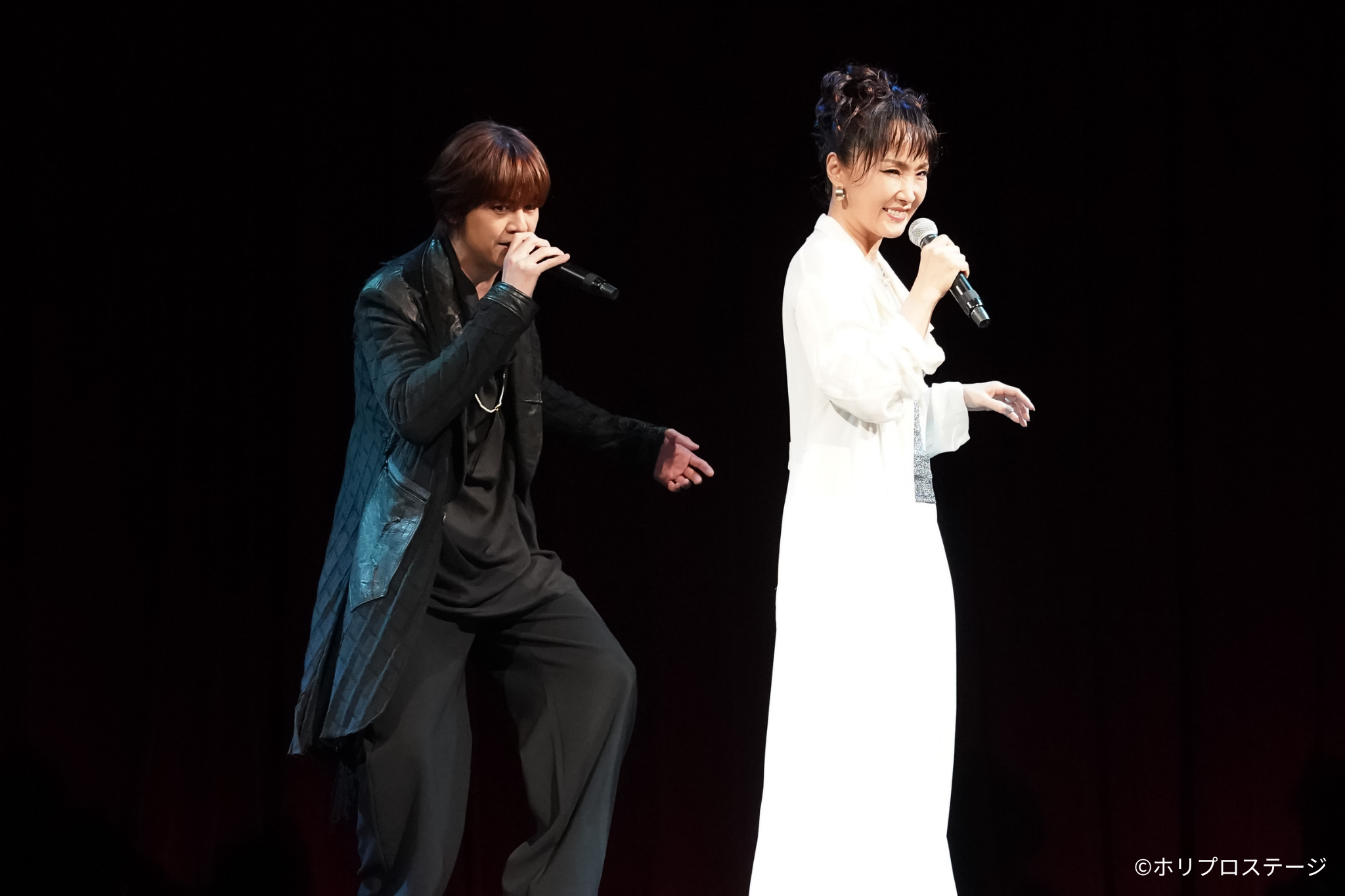 初演からのオリジナルキャストで8年ぶりにカムバックした濱田めぐみと、夜神 月役から死神リューク役に転生した浦井健治の2人が早くも息の合ったデュエットを披露した。