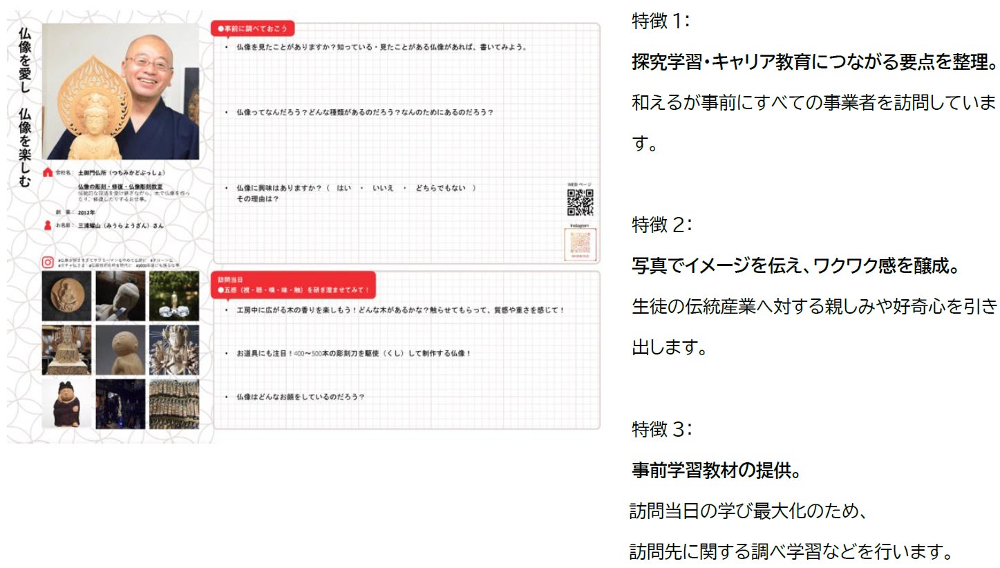 プログラムを通じ、子供たちは伝統を未来へつなぐ方々の「生き様が反映された営み」を五感で体感し、伝統を守りつつも新たな挑戦をし続け、強い信念をもって変化の時代を生き抜く姿に触れます。そうすることで、伝統に対する新たな認識を得て、その魅力を自らの言葉で語ることが出来るようになることや自身の「生き方」や「在り方」について考えるきっかけになるプログラムです。