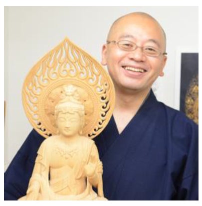 仏像が好き過ぎるあまり、サラリーマンから仏師に転身した経歴を持つ。ドローンで仏像を浮遊させるなど、誰にも思いつかないような新しい挑戦をしている。