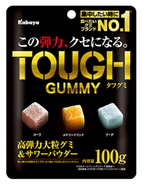 日本マーケティングリサーチ機構が、2022年4月にグミ商品においてのインターネット調査を実施した結果、カバヤ食品株式会社が販売する「タフグミ」が『集中したい時に食べたいグミ No.1』『ハードグミ人気 No.1』を2020年に続いて獲得しました。