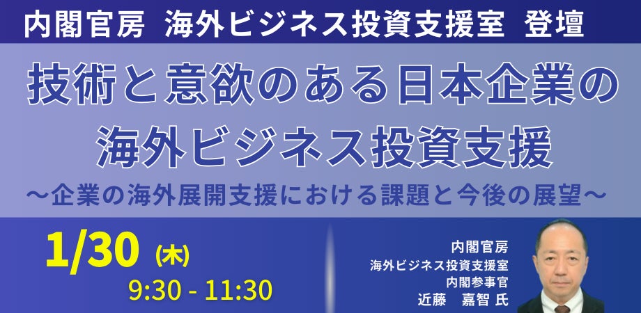 【JPIセミナー】内閣官房 海外ビジネス投資支援室「技術と意欲のある日本企業の海外ビジネス投資支援について」1月30日(木)開催