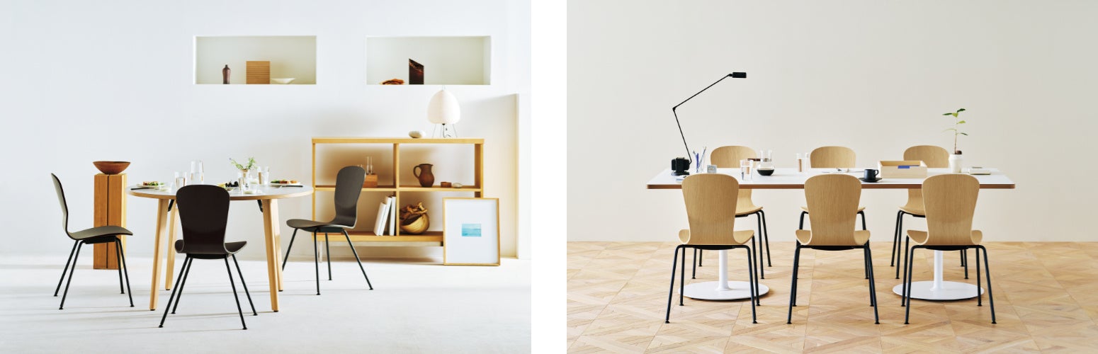 コクヨは、食事をするシーンにふさわしいチェアーとは、食事をする行為を妨げないことと考えています。そこでこの度、自社の家具開発で培ってきた知見と、食空間にまつわる独自のリサーチや検証を経て、食事をするシーンにふさわしいチェアー「Toss」を開発しました。