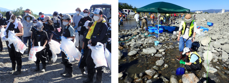 海洋ごみ問題が深刻化し2050 年には魚より海洋ごみの量が多くなると言われていますが、その海洋ごみの7〜8 割が陸由来で、川や水路を伝って海へ流れています。今回は長野県伊那市の小学生を対象に、天竜川の一部をせきとめて「かいぼり体験※」をしながら海洋ごみ問題や環境問題に繋がる川ごみや生き物の体験学習を実施しました。