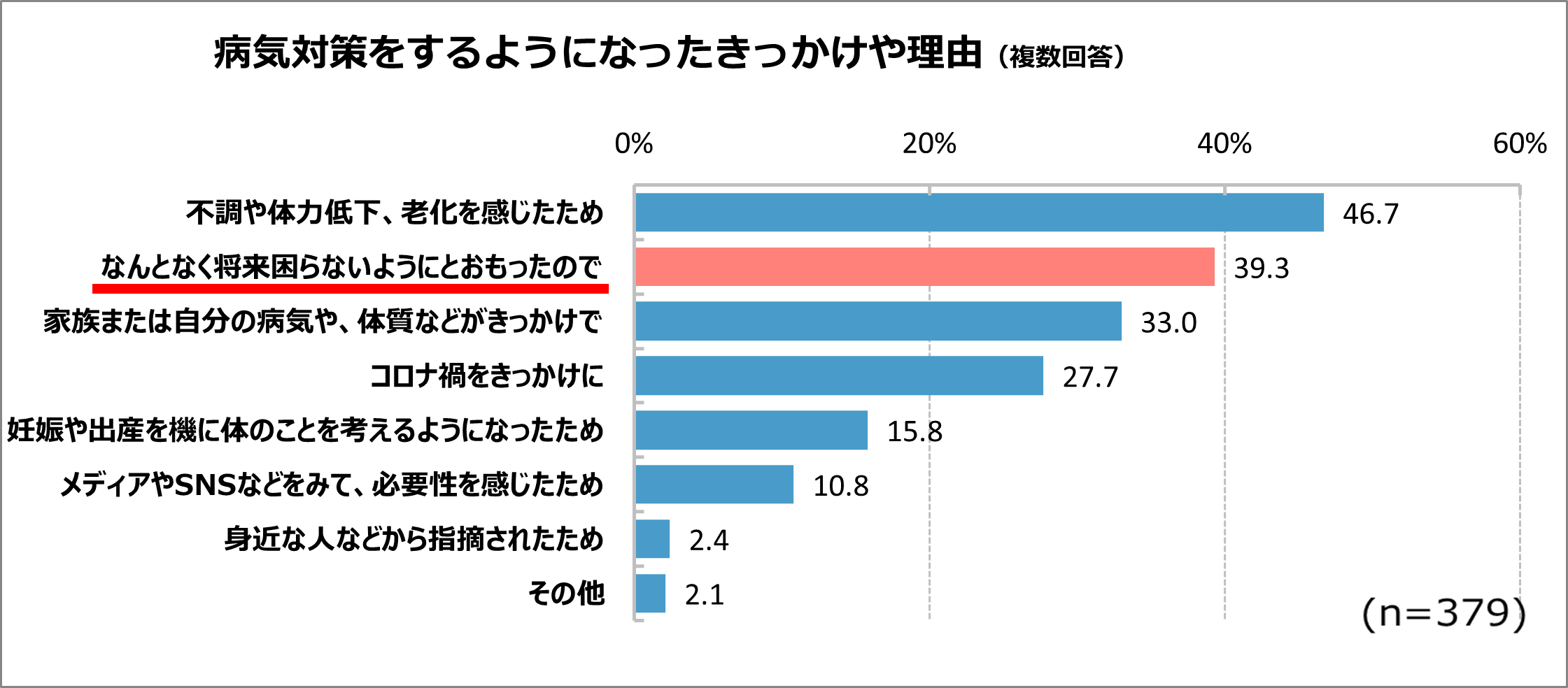 ●病気にならないように対策や予防を行う背景。4割が「なんとなく将来困らないように」